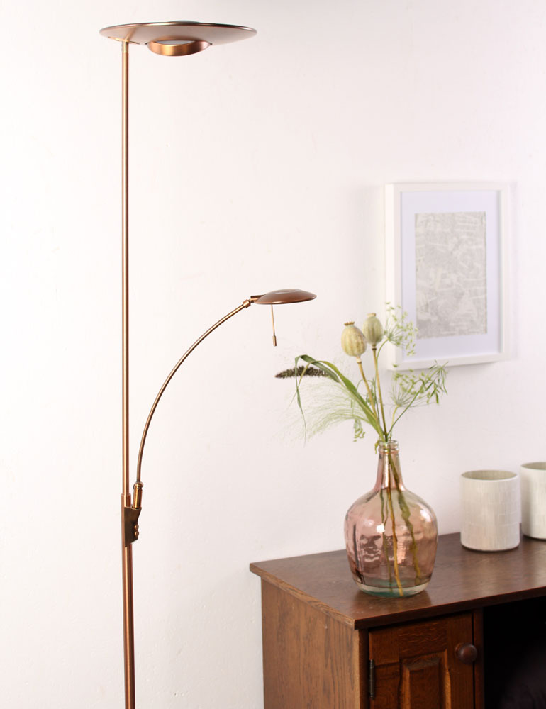Heb jij nog een plekje vrij naast jouw favoriete leesstoel? Plaats Zenith dan hier. Zenith bestaat uit twee delen: een uplight en een leesarm. Ga je voor functionele- of sfeerverlichting? Deze keuze hoef je gelukkig niet te maken! In de kap van de uplight bevindt zich een draaibaar gedeelte. Hierdoor schijnt het licht altijd waar jij wilt. De leesarm is draaibaar en het kapje zowel kantel- als draaibaar. Bovenaan het kapje bevindt zich ook een kleine, hoefijzervormige opening waar licht doorheen schijnt. Super praktisch en sfeervol!