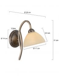 De bronskleurige wandlamp uit de Capri-serie van Steinhauer voegt een klassiek accent toe aan elk interieur. De sierlijke metalen structuur wordt gecombineerd met een subtiel gemarmerd glas in crème/geel, wat zorgt voor een zachte en warme lichtspreiding. Uitgerust met een E27 fitting en geschikt voor lichtbronnen tot 40 watt, waardoor de lamp een perfect balans biedt tussen functionaliteit en sfeerverlichting. Dankzij de snoerschakelaar is de bediening eenvoudig. Een stijlvolle wandlamp voor de eetkamer, het (thuis)kantoor, de slaapkamer of hal.