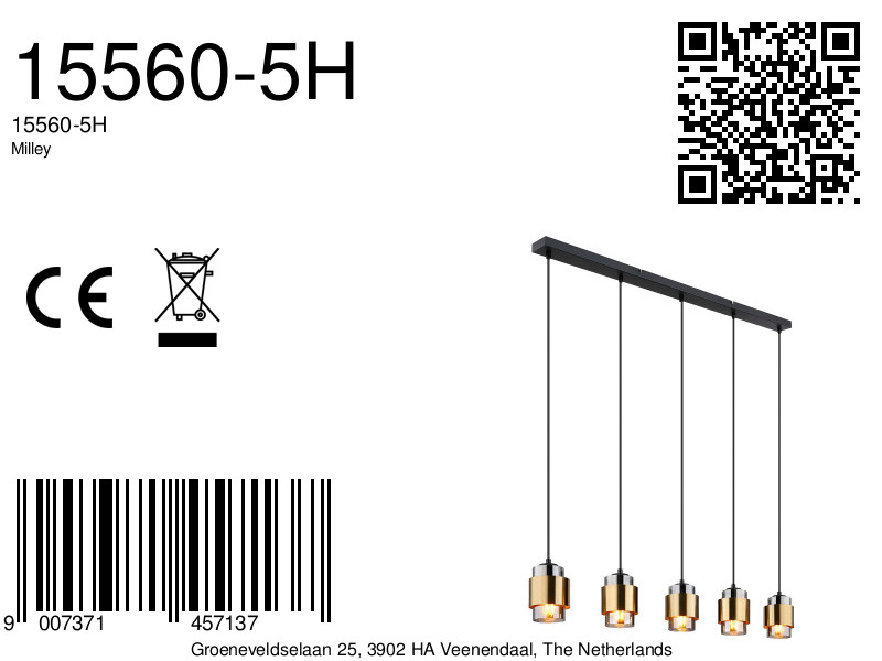 De hanglamp van de MILLEY-serie, gemaakt van zwart metaal met gerookt glas en messing ring, is een stijlvolle keuze voor elke woonkamer of eetkamer. Met een afmeting van LxBxH: 1050x100x1500 mm wordt het een blikvanger in elke ruimte. De lamp heeft 5x E27 40W 230V lampen nodig en wordt zonder deze lampen geleverd.