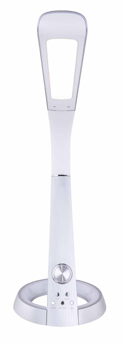 Presenteer je interieur opvallend met de MITTI tafellamp, gecraft uit glimmend zilverkleurige kunststof. Dit flexibele model, met instelbare lichtkleur en aanraakbediening, spreekt zowel jongeren als ouderen aan. Caracteristiek is de opvallende voet die in diverse tinten kan gloeien, dankzij de ingebouwde 2 watt LED RGB lamp, wat het ook uitermate geschikt maakt als nachtlamp. Het helder licht dat variëert van warm wit tot koud, geproduceerd door de bijgevoegde 8 watt LED lamp, biedt sfeerverlichting én functionaliteit. Deze dimbare lamp brengt ongetwijfeld levenslust in je woonruimte.