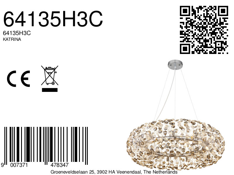 De indrukwekkende kroonluchter “KATRINA” is een ware aanrader voor liefhebbers van klassiek design. Met zijn ronde chroomplated metalen lichaam en omliggende ring van K9-kristallen in zowel rookkleurige als transparante uitvoeringen, valt deze plafondlamp direct op. De kristallen hebben de unieke eigenschap om het licht op een fascinerende manier te refracteren, wat bijdraagt aan de betoverende uitstraling. Dankzij de 20 XG9 LED-lampen zorgt de “KATRINA” voor een warme lichttemperatuur van 3000K en een helderheid van 350 lumen, wat resulteert in een gezellige en uitnodigende sfeer.