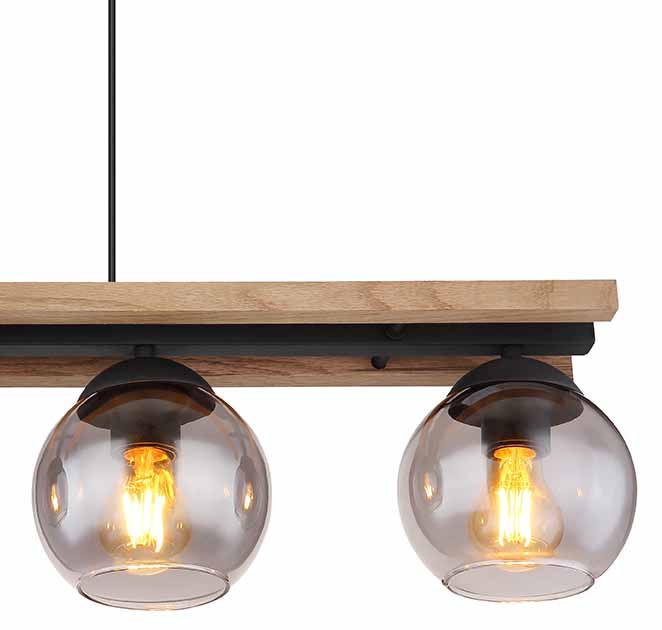 Onze CONNI hanglamp in vintage stijl biedt een unieke toevoeging aan uw huis. Met een rechte staaf en bolvormige glazen, gemaakt van zwart mat metaal en donkerbruin hout, straalt deze lamp een nostalgische charme uit en biedt een warm en aangenaam licht. Perfect voor het creëren van een gezellige sfeer in woonkamers, eetruimtes of gangen.