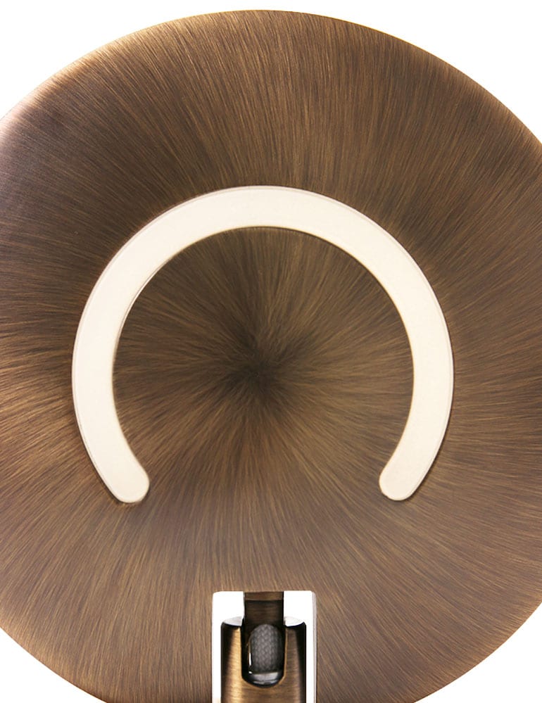 Deze bronzen wandlamp uit de Zenith-serie combineert een klassiek design met moderne technologie. De lamp is uitgerust met een vervangbare LED-module van 6 watt en heeft een lichtopbrengst van 700 lumen. Dankzij de verstelbare reflector bepaal je zelf de lichtval. De kleurtemperatuur is instelbaar van 2200 Kelvin (warm geel licht) tot 4000 Kelvin (fel wit licht). De pushdimmer op de wandplaat maakt het eenvoudig om de gewenste sfeer te creëren. De wandplaat heeft een diameter van 12 cm en de lamp steekt 14,5 cm uit. Wordt geleverd met een snoer van 165 cm. Deze wandlamp van het merk Steinhauer wordt geleverd met 2 jaar garantie.