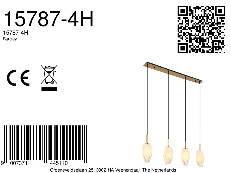 De BARCLEY-serie hanglamp, uitgevoerd in een chique messingkleurig metaal en gecombineerd met opaal- en helder glas, biedt een sfeervolle en efficiënte lichtoplossing voor alle middelgrote kamers. Het getinte PVC-zwarte snoer voegt een hedendaags accent toe aan het ontwerp. Met een omvang van 900x110x1200mm en de vereiste gloeilampen van 4x E14 LED 7W 230V (niet meegeleverd), zorgt het voor een heldere verlichting. De combinatie van opaal- en helder glas zorgt voor een aangenaam gedempt licht, waardoor deze lamp een elegante keuze is voor elk interieur.