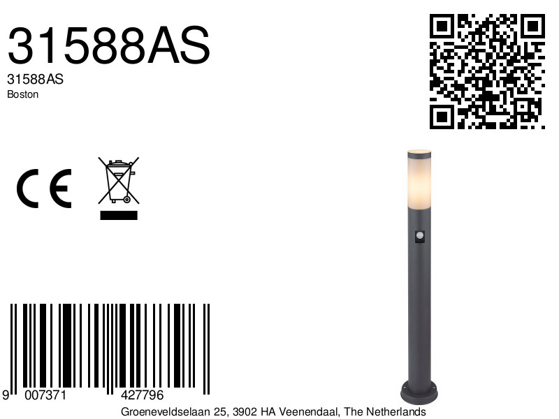 Voeg een verfijnde toets toe aan je tuin of terras met onze Boston-serie cilindervormige buitenlamp (diameter 12,7 cm, hoogte 80 cm). Deze elegante lamp is vervaardigd uit antracietkleurig roestvrij staal en opaal plastic, waarmee je de E27-aansluiting kunt personaliseren met een lamp van je keuze, waardoor je de helderheid en lichtkleur naar wens kunt aanpassen. De eenvoudige montage op vlakke oppervlakken wordt verzekerd door de geïntegreerde basis, terwijl de ingebouwde bewegingsdetector functionaliteit en veiligheid toevoegt binnen een bereik van acht meter. Combineer dit met andere items binnen deze serie voor een harmonieus en stijlvol buitendecor.