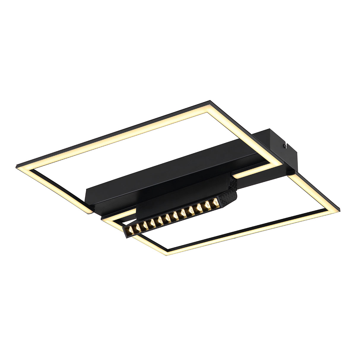 Ervaar sfeervolle verlichting met deze matzwarte plafondlamp uit de MAXWELL serie, vervaardigd uit een combinatie van aluminium, mat zwart metaal en kunststof. De verlichtingsunit wordt bedekt door een zwarte kunststof kap en beschikt over een instelbare helderheid via de wandschakelaar, gesupplementeerd door een geheugenfunctie. Deze gestroomlijnde lamp heeft ook een beweegbare spot in het midden en meet 420x420x110mm. De lamp heeft twee LED lichtbronnen: een 35W 230V LED produceert een lichtbron van 3610lm en levert 2310lm output en een extra 5W 230V LED lichtbron geeft 353lm met een output van 345lm, beiden met een kleurtemperatuur van 3000K voor een warme ambiance.