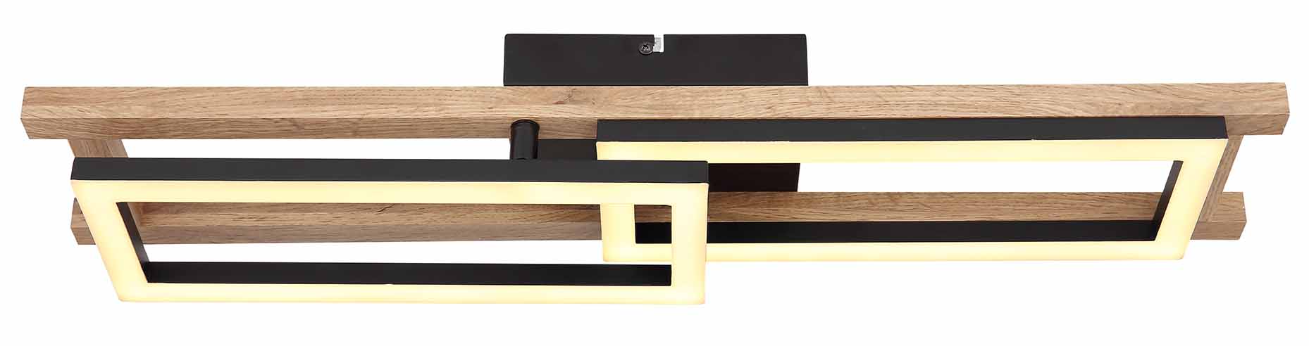 De ILLA-serie plafondlamp combineert naadloos een modern design met functionaliteit, waardoor deze het middelpunt van elke kamer wordt. Met een zwarte matte metalen plafondbevestiging en een stijlvol 69 cm houtlook raamwerk dat twee rechthoekige LED-panelen ondersteunt, belichaamt deze lamp elegantie en klasse. Het LED-licht dat wordt uitgestraald door de 20-watt, 850-lumen LED-panelen biedt een warm wit licht van 3000 Kelvin. Hiermee brengt de lamp niet alleen licht in de ruimte, maar ook een warme en aangename sfeer.