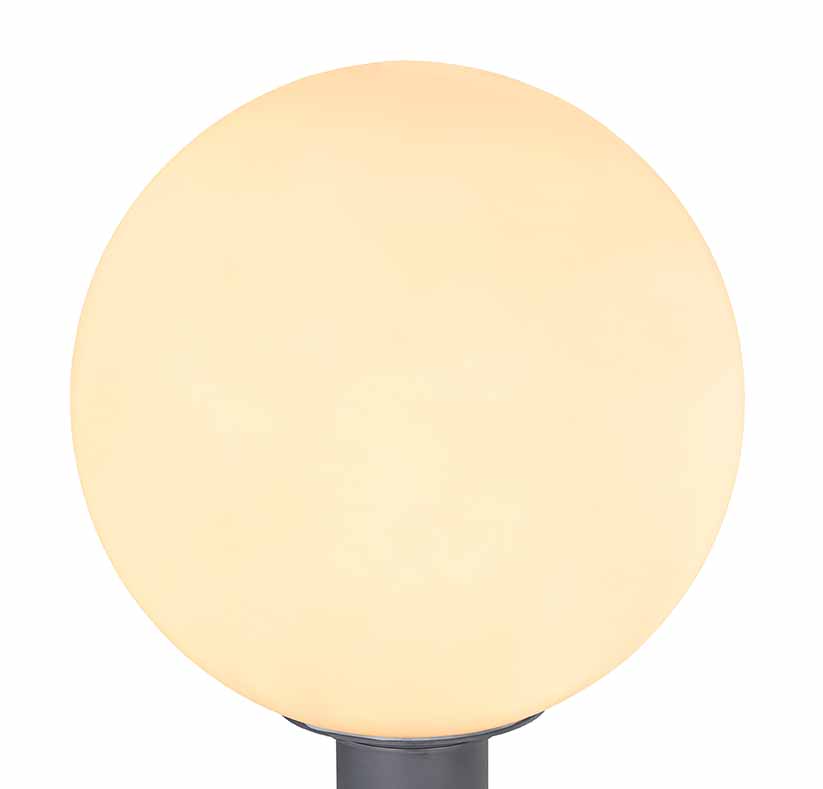 Verrijk uw buitenruimte met deze stijlvolle ronde buitenlamp, ontworpen uit duurzaam antracietkleurig aluminium en bekleed met een opaal glazen bol van 25 cm. Dankzij de IP44 beschermingsklasse is deze betrouwbare lichtbron perfect bestand tegen de elementen. De LED-lampvoet E27 biedt u de vrijheid om de verlichtingskleur en de helderheid naar uw wensen in te stellen. Voor een coherent esthetisch effect, combineer deze lamp met andere modellen uit dezelfde reeks en geef uw tuin of terras een volledige make-over.