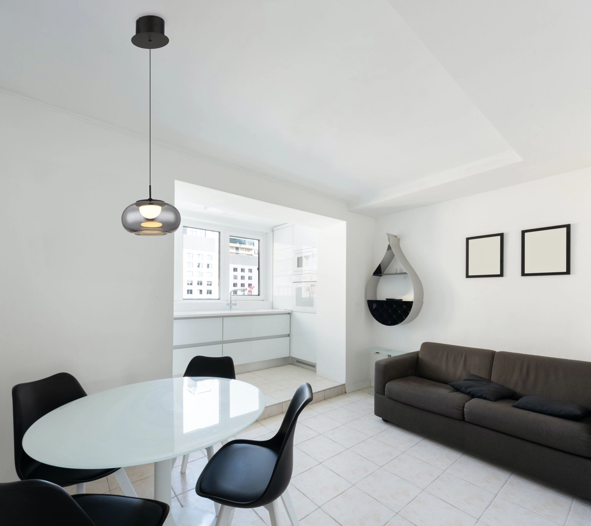 De hanglamp Globo is een moderne en elegante hanglamp die elke ruimte transformeert. Met zijn ronde, bolvormige glazen kap, prachtig in combinatie met het zwart matte metaal, voegt deze lamp een vleugje stijl toe aan je interieur. De rookkleurige glazen kap zorgt voor een sfeervolle verlichting die perfect aansluit bij diverse interieurstijlen. Dankzij de verstelbare hoogte vind je gemakkelijk de ideale positie voor jouw ruimte. Met een diameter van 200 mm en een lichtopbrengst van 400 lumen biedt deze lamp voldoende licht voor verschillende toepassingen.