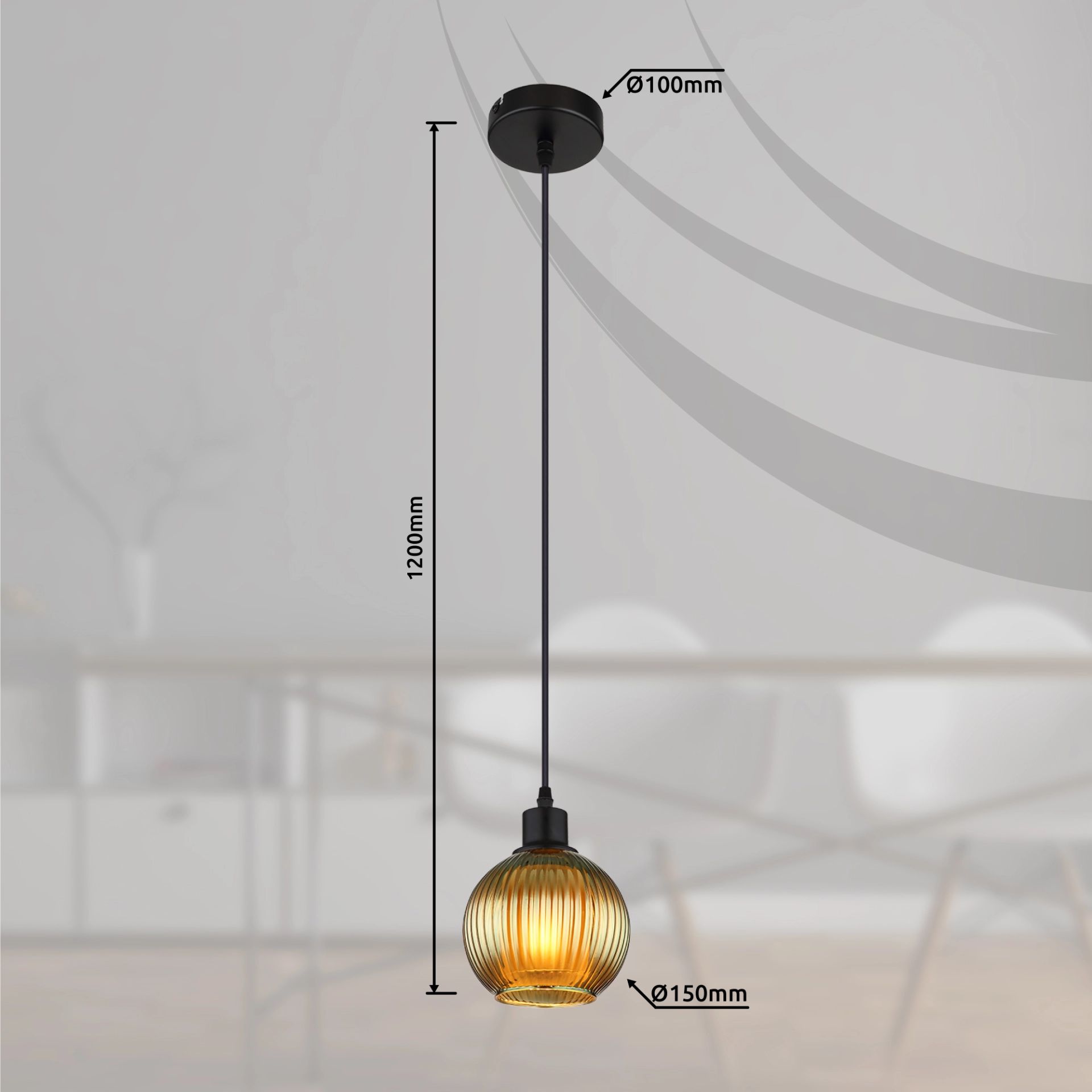 Met een E27 fitting en een vermogen van 25W levert deze hanglamp voldoende helderheid voor uw woonkamer, slaapkamer of hal. Ongeacht waar u de lamp plaatst, deze pendant lamp zal ongetwijfeld de aandacht trekken. Voeg een eigentijdse flair en aangename verlichting toe aan uw interieur met deze ronde hanglamp van matzwart metaal en de gegroefde glazen bol.