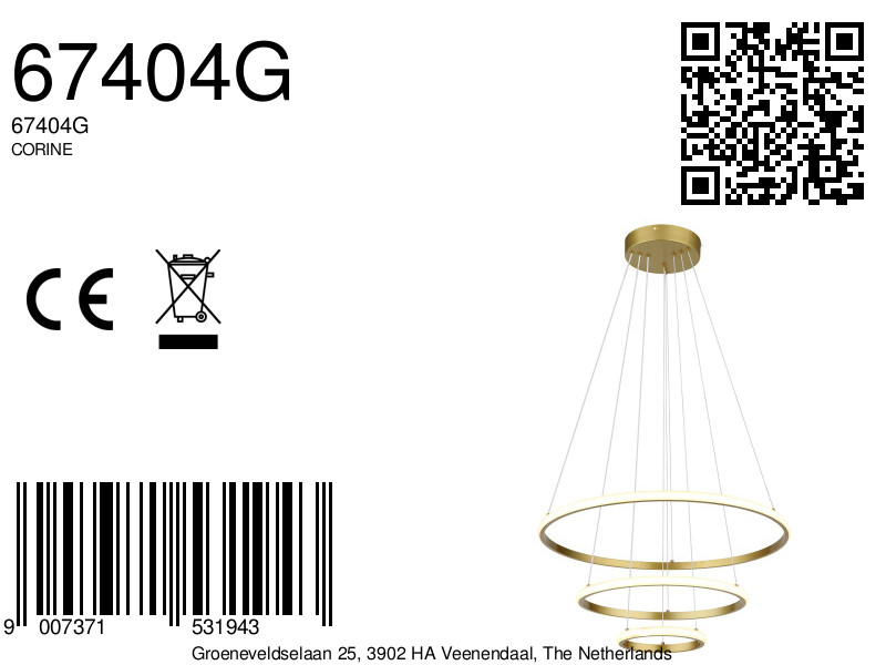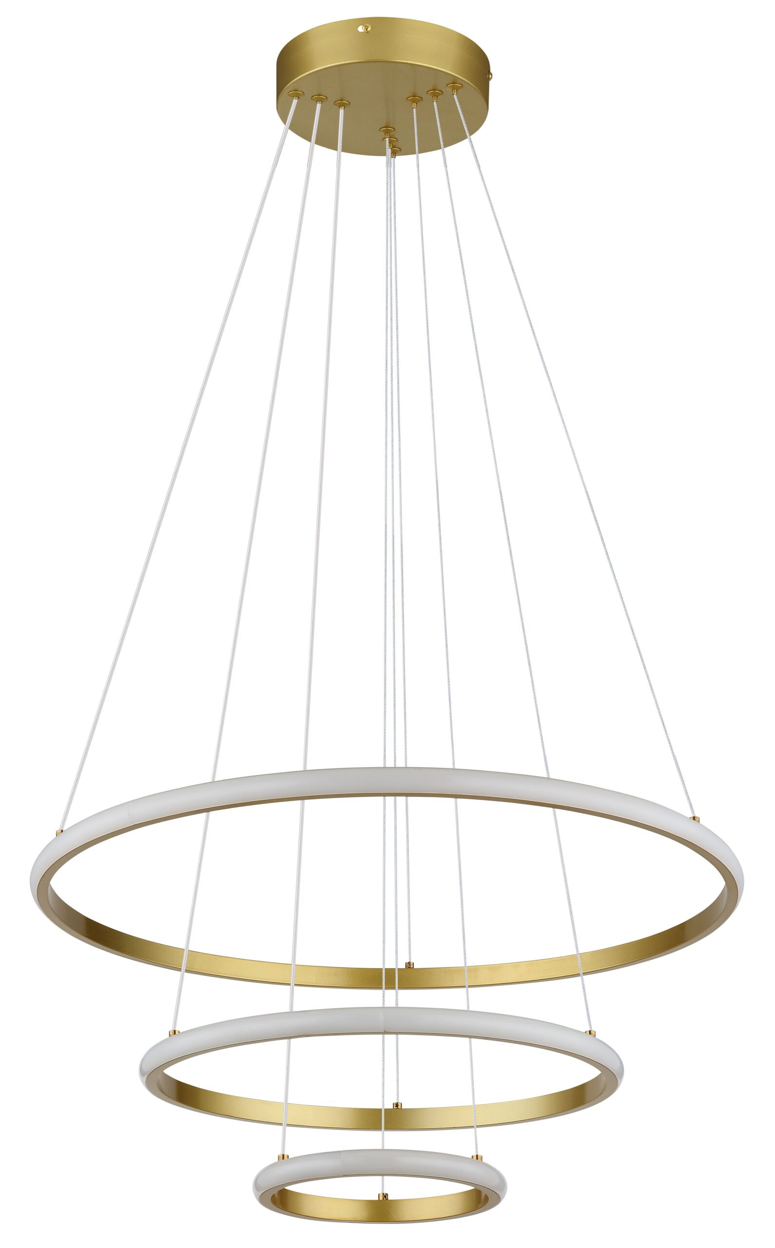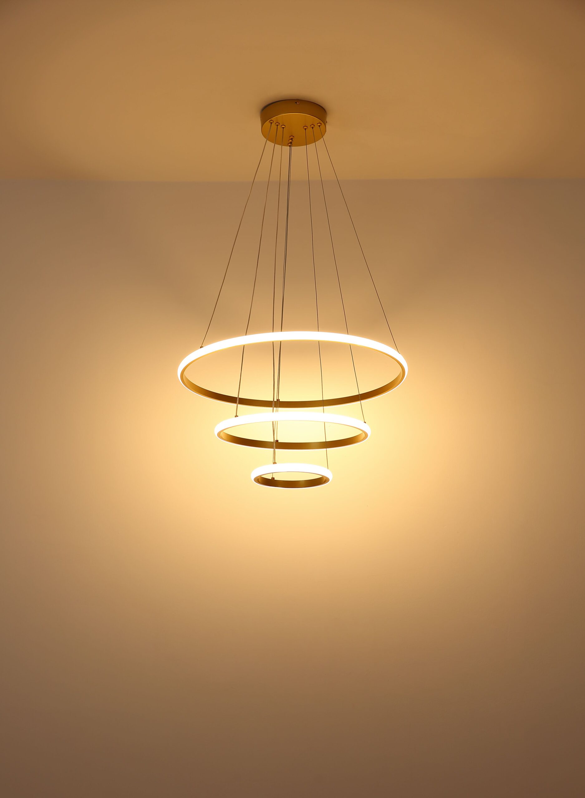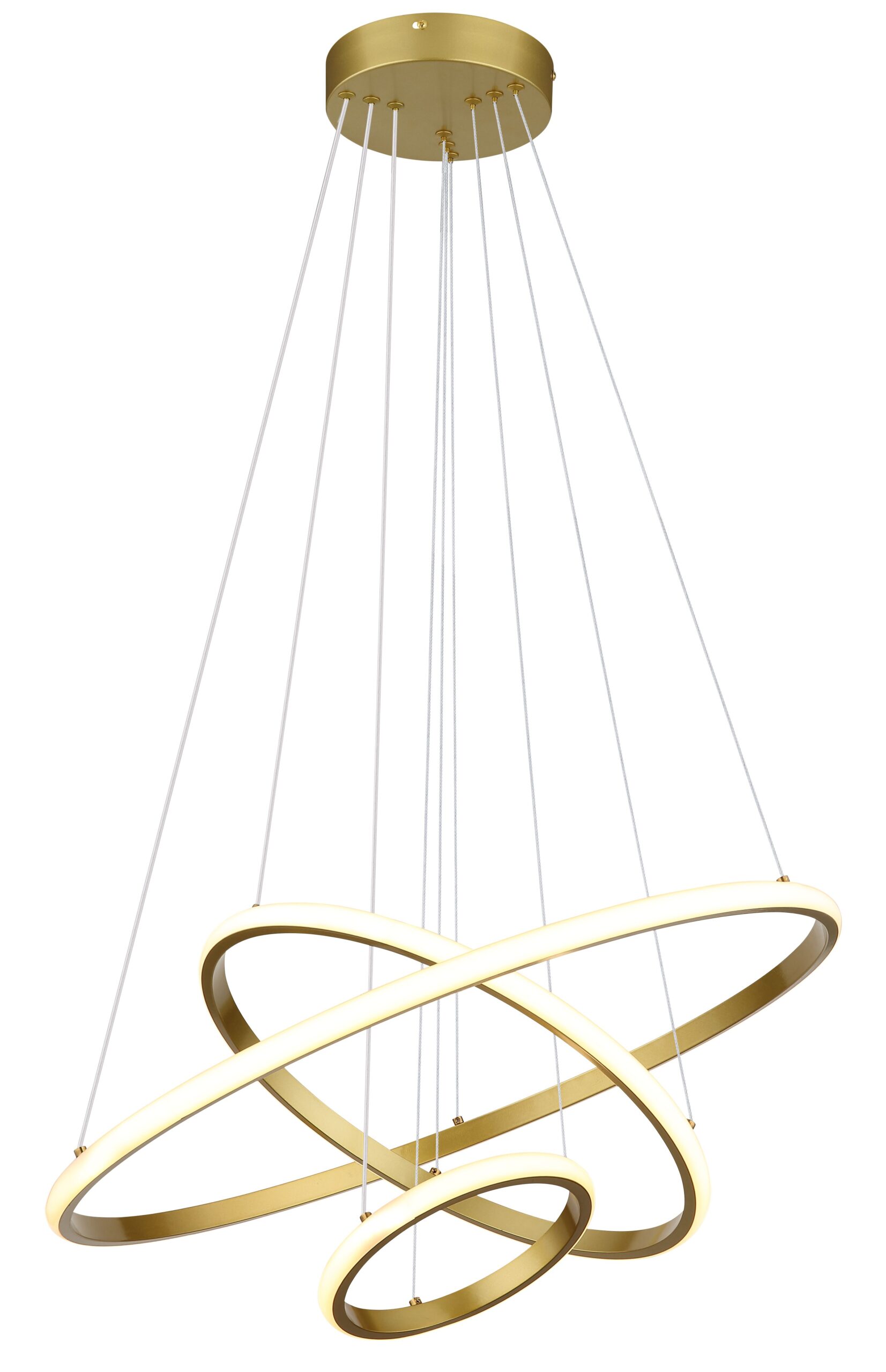 De CORINE hanglamp is een stijlvolle toevoeging aan elk interieur, waarmee je elegante accenten kunt toevoegen aan elke ruimte. Met zijn ronde vorm en drie ringen die op unieke manieren zijn gerangschikt, straalt deze lamp moderniteit uit. Gemaakt van luxueus goudkleurig, mat metaal, biedt de lamp niet alleen een chique uitstraling, maar dankzij de combinatie van metaal en opaal kunststof ook een aangename lichtverdeling. Met een diameter van 600 mm is de CORINE hanglamp perfect voor grotere kamers zoals woon- en eetkamers.