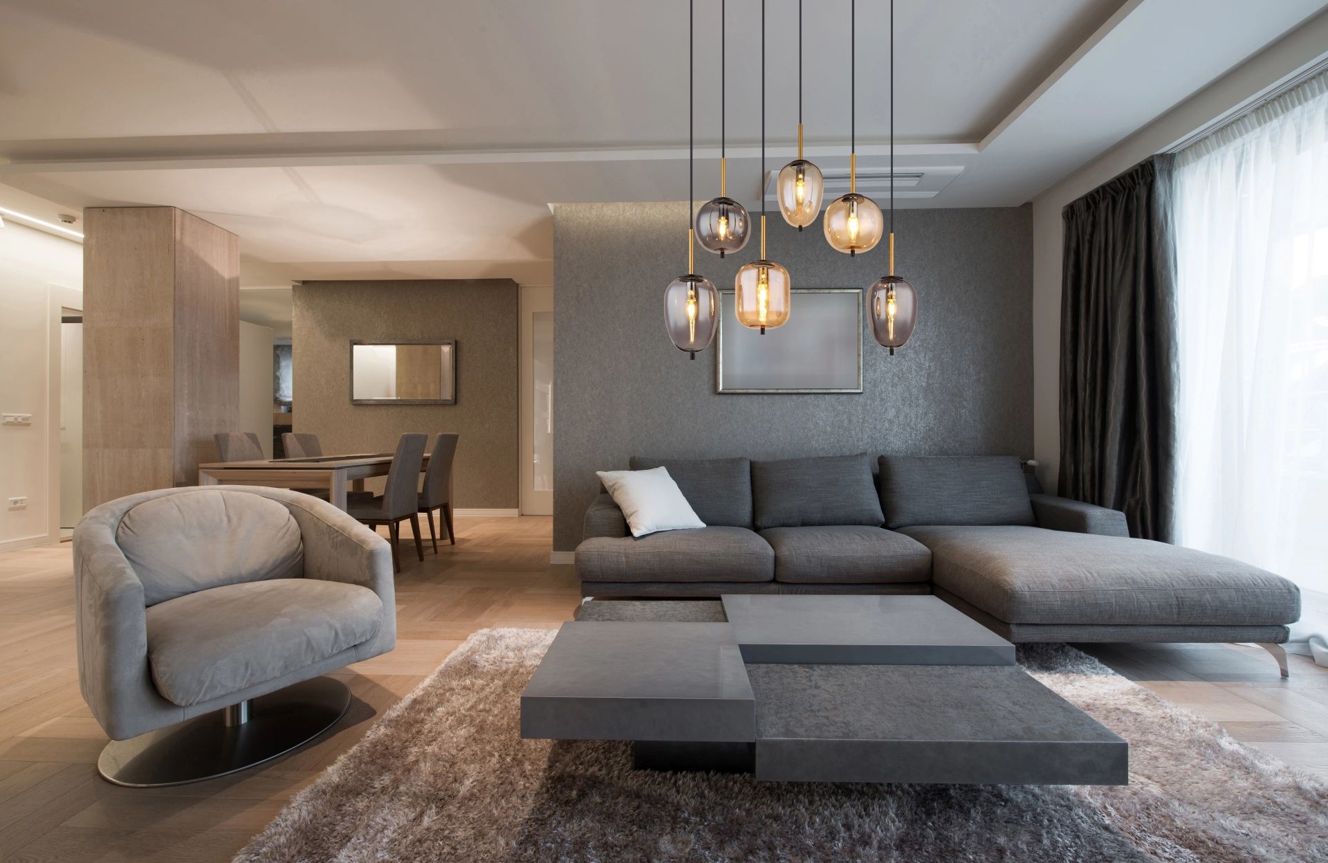 Moderne hanglamp met rookkleurige glazen shades Blacky