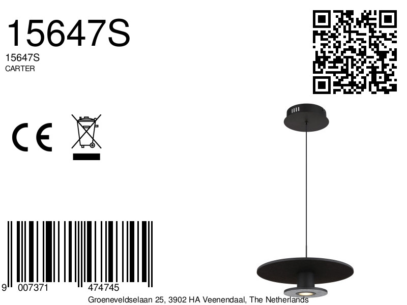 De hanglamp CARTER Globo is de ideale keuze voor iedereen die stijlvolle en moderne verlichting zoekt. Met zijn ronde vorm en platte, met vilt beklede schijven biedt deze hanglamp een uniek ontwerp dat perfect past in veeleisende interieurs. De lamp heeft een stevige metalen constructie in zwart matte afwerking, wat zorgt voor een strakke en eigentijdse uitstraling. Het lampenkap is gemaakt van aluminium met dezelfde elegante zwarte matte afwerking, wat bijdraagt aan een harmonieus geheel. De zwart-grijze textielbedekking voegt een tijdloos accent toe aan het ontwerp.