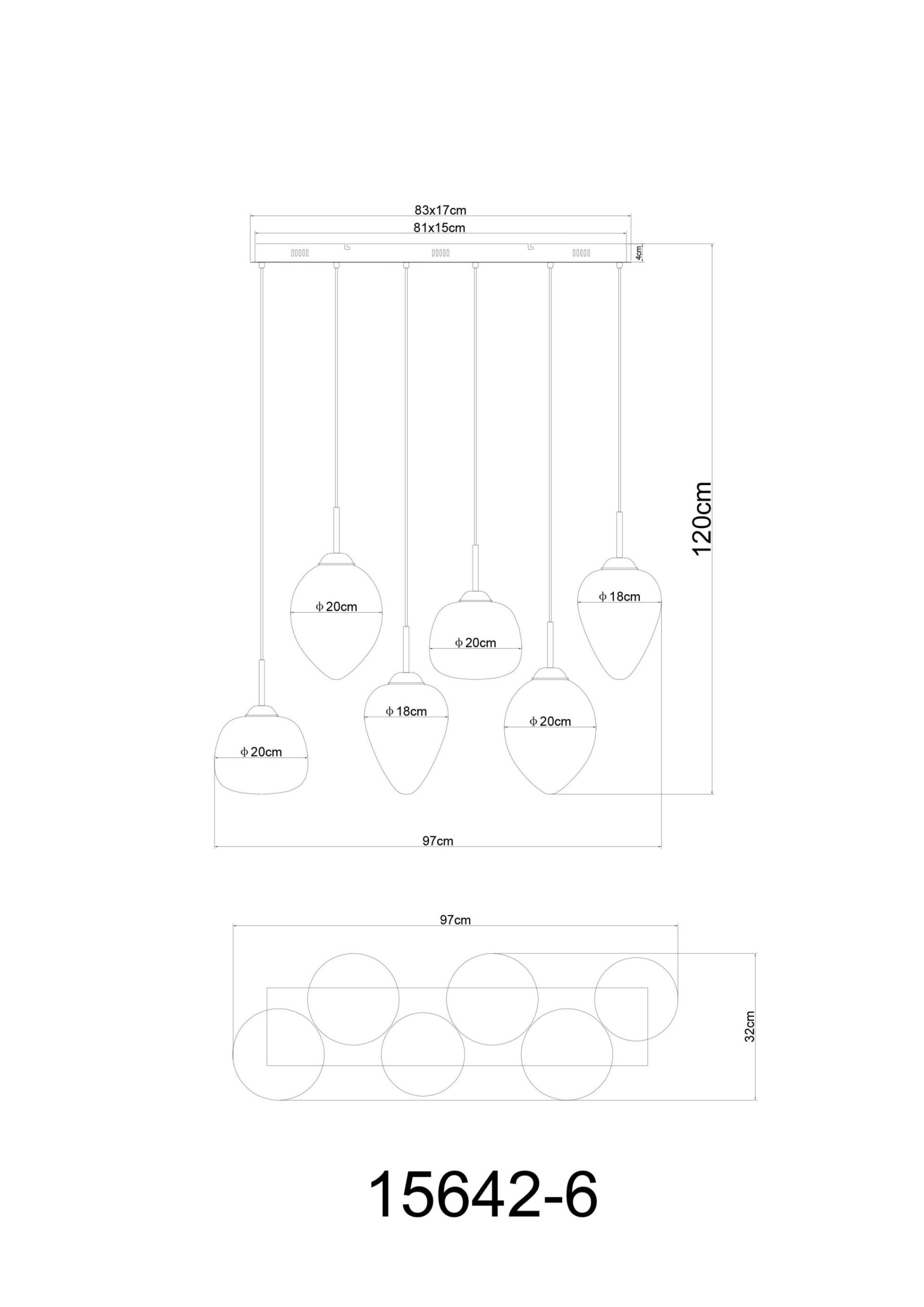 De hanglamp Globo is een opvallende hanglamp met een moderne uitstraling. Het ontwerp combineert zes unieke glasvormen met een matzwart, gelakt metalen frame, waardoor een harmonieuze en eigentijdse look ontstaat. Met afmetingen van 780 mm in lengte en 630 mm in breedte biedt deze lamp royale dimensies die perfect zijn voor diverse ruimtes. Het rookkleurige, heldere glas zorgt voor een sfeervolle verlichting en het vermogen van 48W met een warme lichtkleur van 3000K maakt het een ideale keuze voor bijvoorbeeld de eetkamer, woonkamer of kantoor.