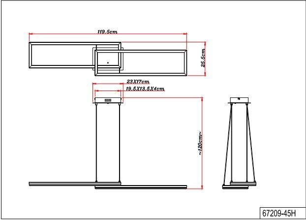Met een afmeting van 1195x255x1200mm is deze lamp een echte eyecatcher in uw interieur. De ingebouwde LED heeft een vermogen van 40W en werkt op een spanning van 230V, met een lichtopbrengst van 460-5150 lumen en een output van 210-2300 lumen. De kleurtemperatuur is instelbaar van 2700K tot 6500K, waardoor u altijd de perfecte sfeer kunt creëren. Deze veelzijdige lamp past in elke ruimte van uw huis en voegt een moderne touch toe aan uw inrichting.