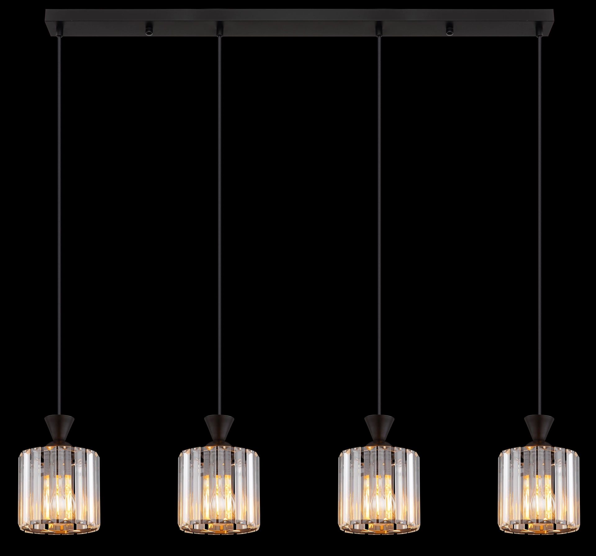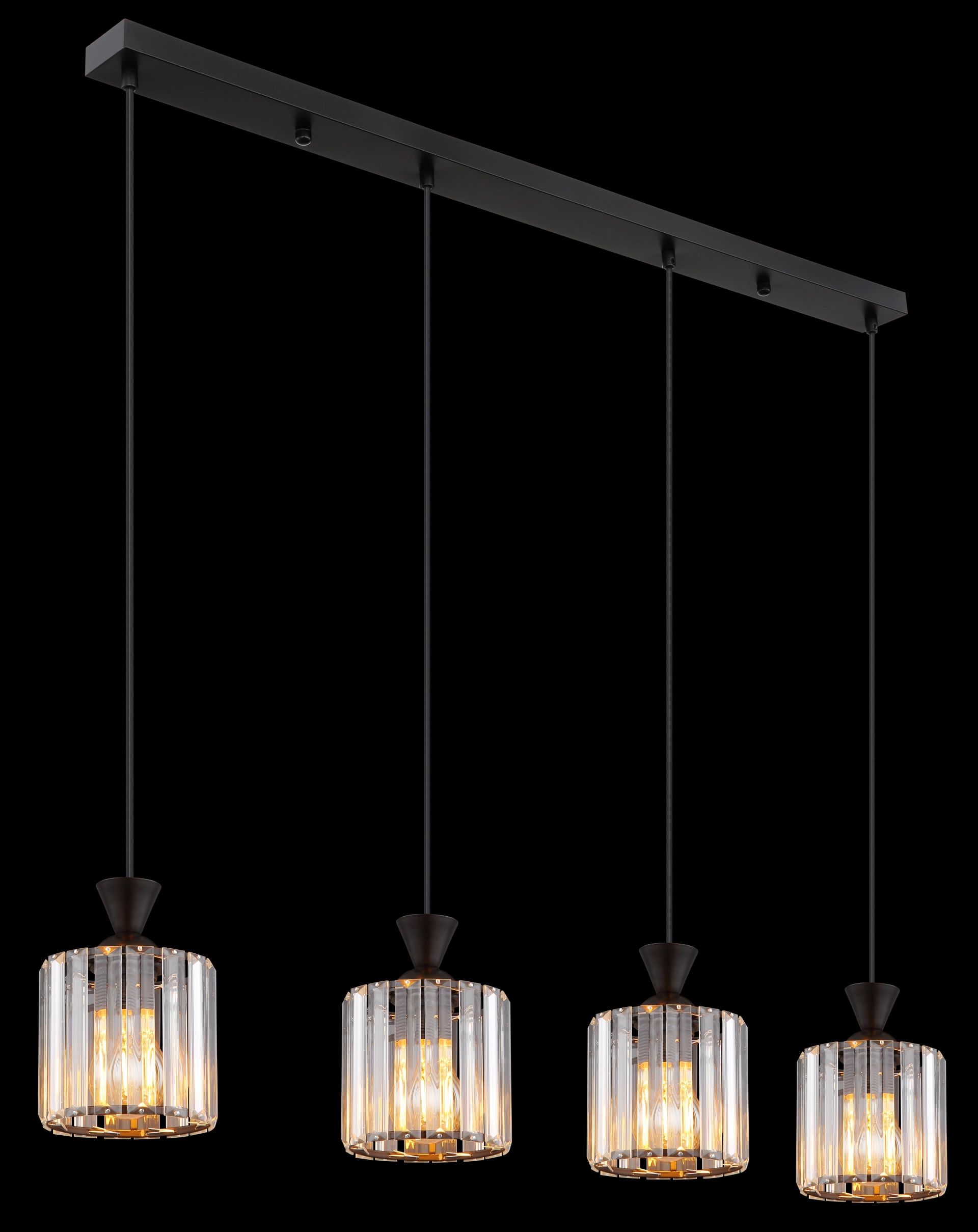 Deze moderne pendellamp heeft een langwerpig ontwerp en is vervaardigd uit matte zwarte metaal, verfraaid met heldere acrylkristallen. Dankzij de rechte rail en de vier hangers biedt deze lamp voldoende ruimte voor vier E27 fittingen, die elk een maximaal vermogen van 60W kunnen hebben. Hiermee creëert u een heldere en verfijnde sfeer in elke ruimte van uw huis. Het zwarte metalen frame voegt een tijdloze elegantie toe, terwijl de acrylkristallen zorgen voor een schitterend lichtspel dat elke ruimte opfleurt.