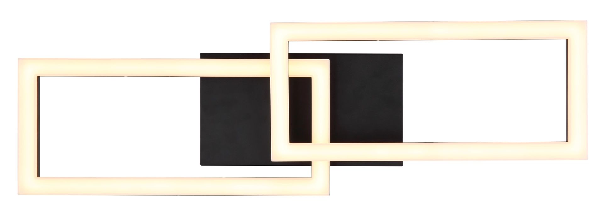 Maak kennis met de SAPENA plafondlamp, een schitterend voorbeeld van modern design. Deze lamp heeft een strakke rechthoekige vorm bestaande uit twee elegante overlappende rechthoeken, wat zorgt voor een uniek visueel effect. Het frame is gemaakt van duurzaam matzwart metaal, terwijl de lampenkap is vervaardigd uit een slimme combinatie van zwart, matte en opale kunststof. Dit doordachte ontwerp biedt niet alleen praktische functionaliteit, maar ook een hoge esthetische waarde.