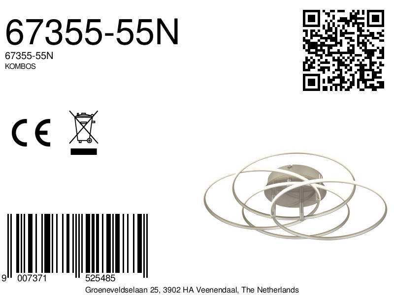 De KOMBOS plafondlamp is een echt pronkstuk met zijn moderne ontwerp dat vier ringen in een ronde vorm elegante boven elkaar plaatst. Het frame van mat nikkel en de kap van aluminium, gecombineerd met nikkel en opaalplastic, geven de lamp een stijlvolle en hedendaagse uitstraling. Met een diameter van 515 mm is deze lamp ideaal voor grotere ruimtes zoals woonkamers, eetkamers en hallways.