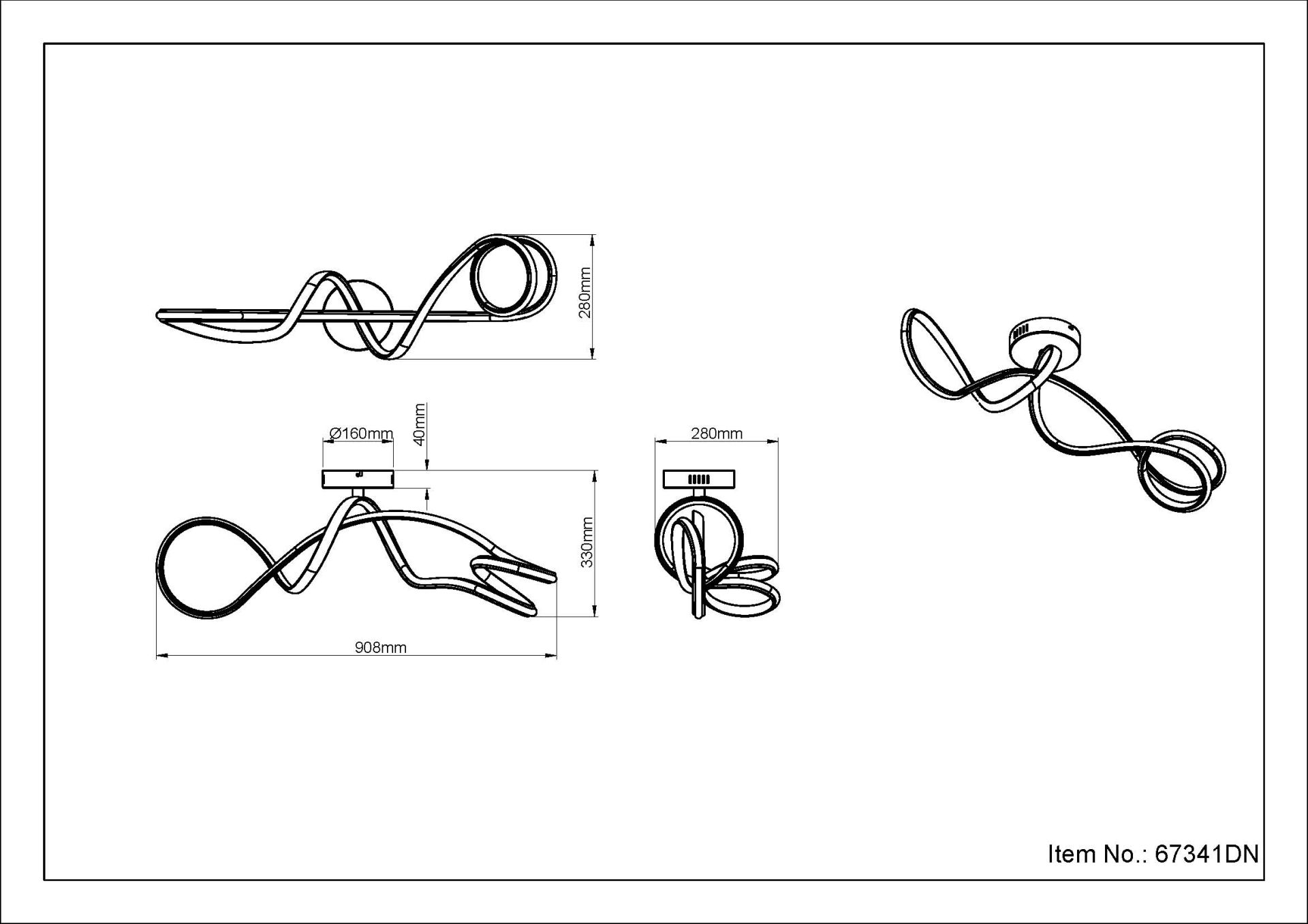 De SWIRL plafondlamp valt direct op dankzij zijn bijzondere, gebogen design, dat geïnspireerd is op elegante strikken en knopen. Het frame van matnikkel in combinatie met de matnikkel aluminium kap zorgt voor een moderne en verfijnde uitstraling. De lamp is uitgerust met heldere kunststof en acryl kristallen die het licht op een prachtige manier weerkaatsen. Met een afmeting van 908 mm in lengte en 280 mm in breedte levert de SWIRL plafondlamp een royale verlichting die ideaal is voor verschillende ruimtes.