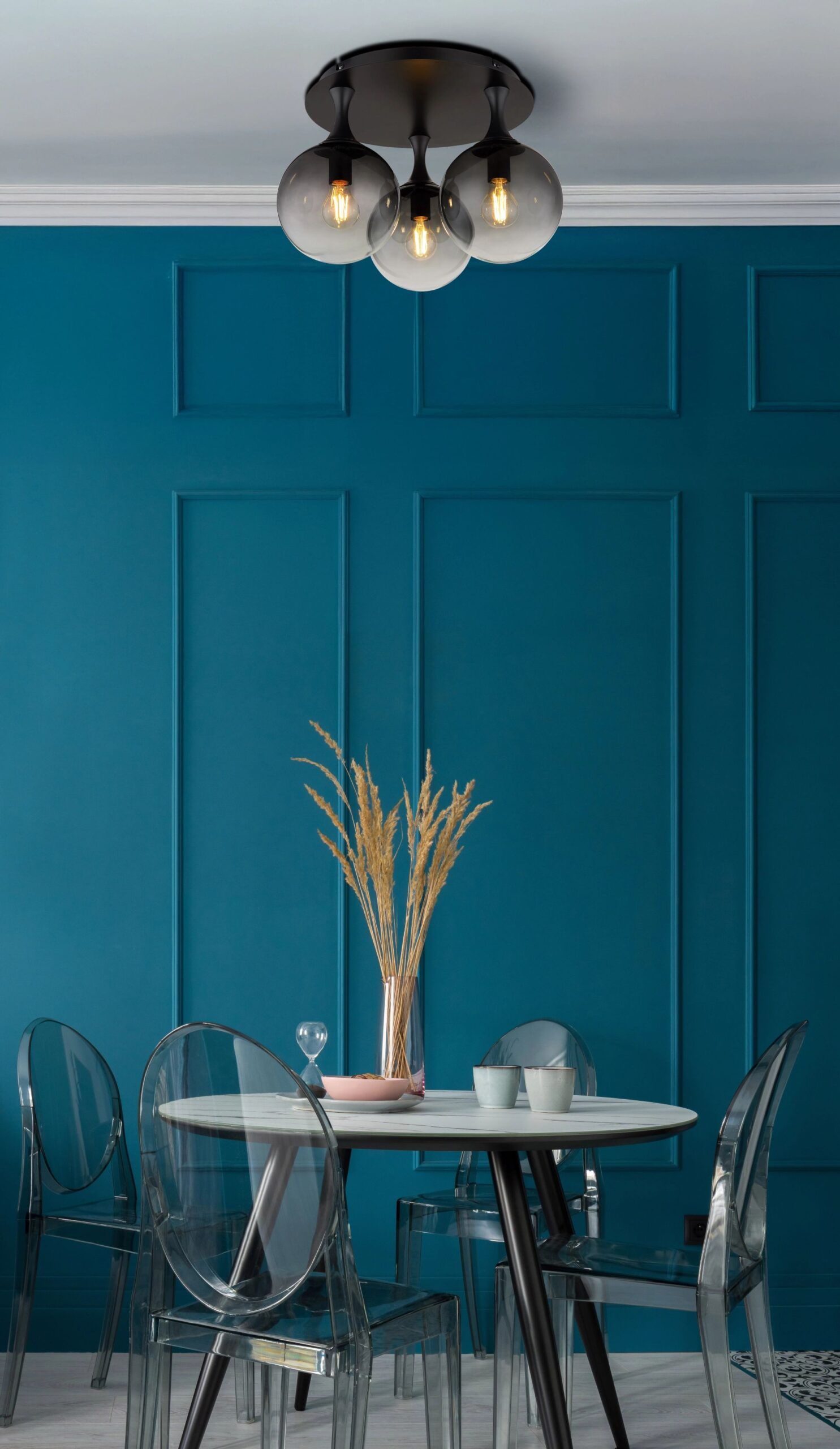 De DALTON plafondlamp is een fraaie combinatie van een ronde vorm en drie elegante glazen bollen in een sfeervolle rookkleur. Het mat zwarte metalen frame voegt een moderne touch toe, waardoor deze lamp een perfect accent vormt in diverse ruimtes. De chique uitstraling van de glazen bollen creëert een stijlvolle ambiance die iedere kamer kan verrijken.