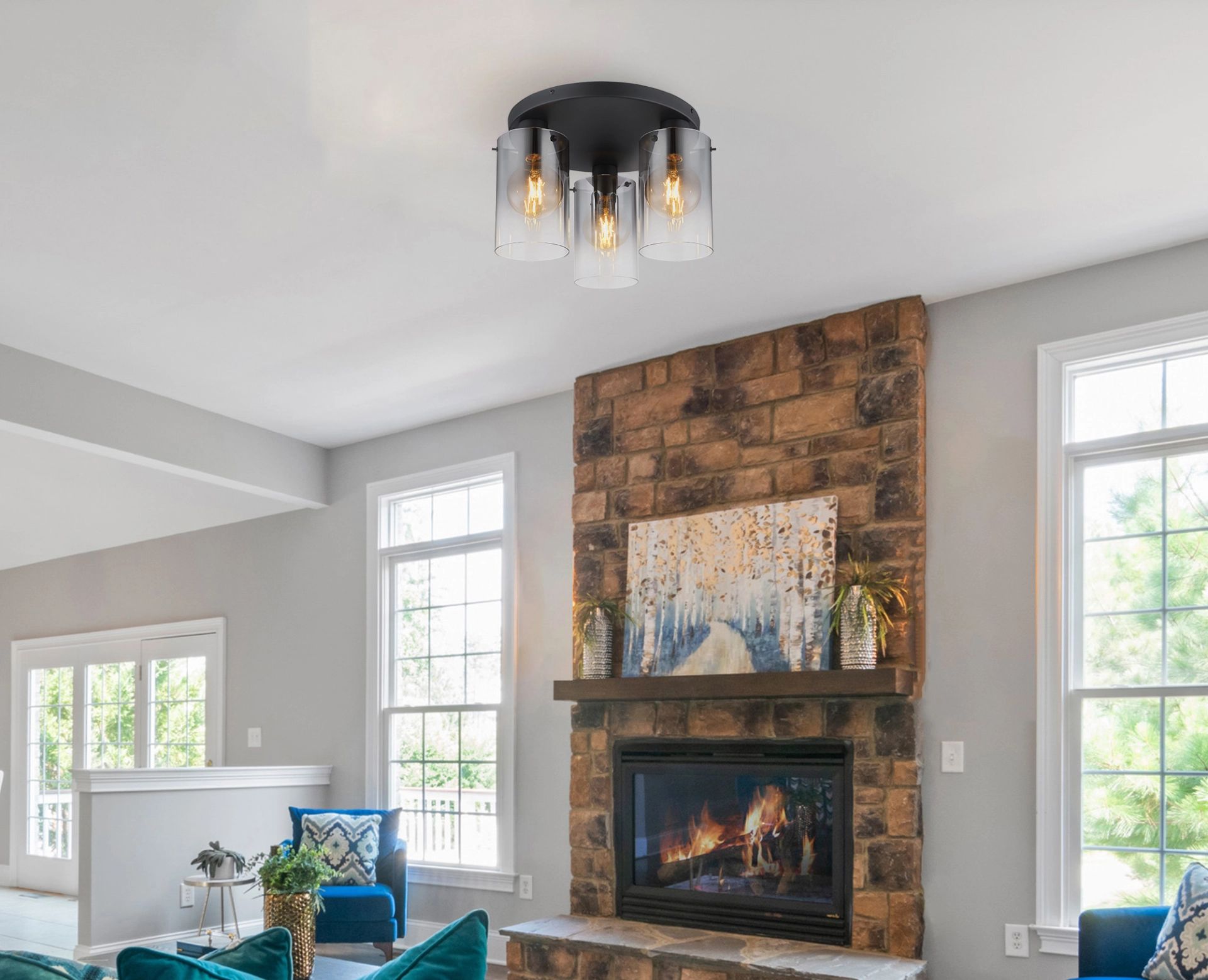 De FLORENTINA plafondlamp combineert modern design met tijdloze elegantie en is de perfecte aanvulling voor elke ruimte in uw woning. De ronde behuizing van mat zwart metaal en de drie opvallende glazen cilinders zorgen voor een echte eyecatcher. De cilindervormen, die variëren van rook- tot helder glas, creëren niet alleen een betoverend lichteffect, maar brengen ook een luxe sfeer in uw interieur.