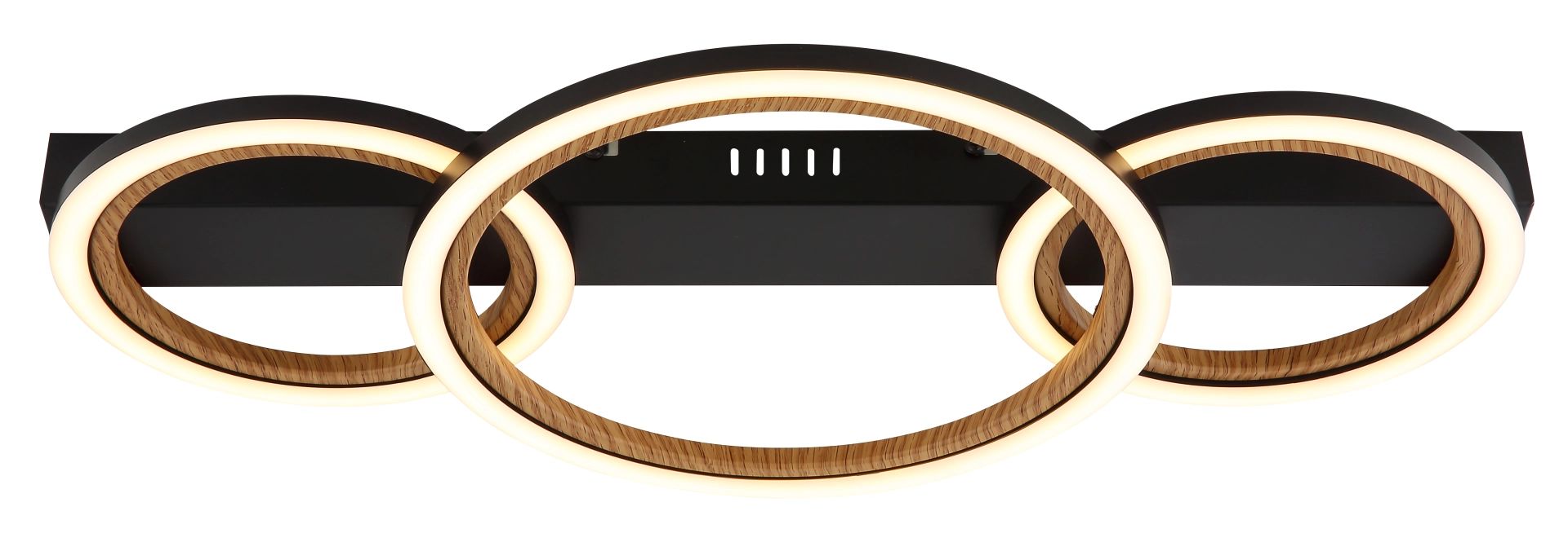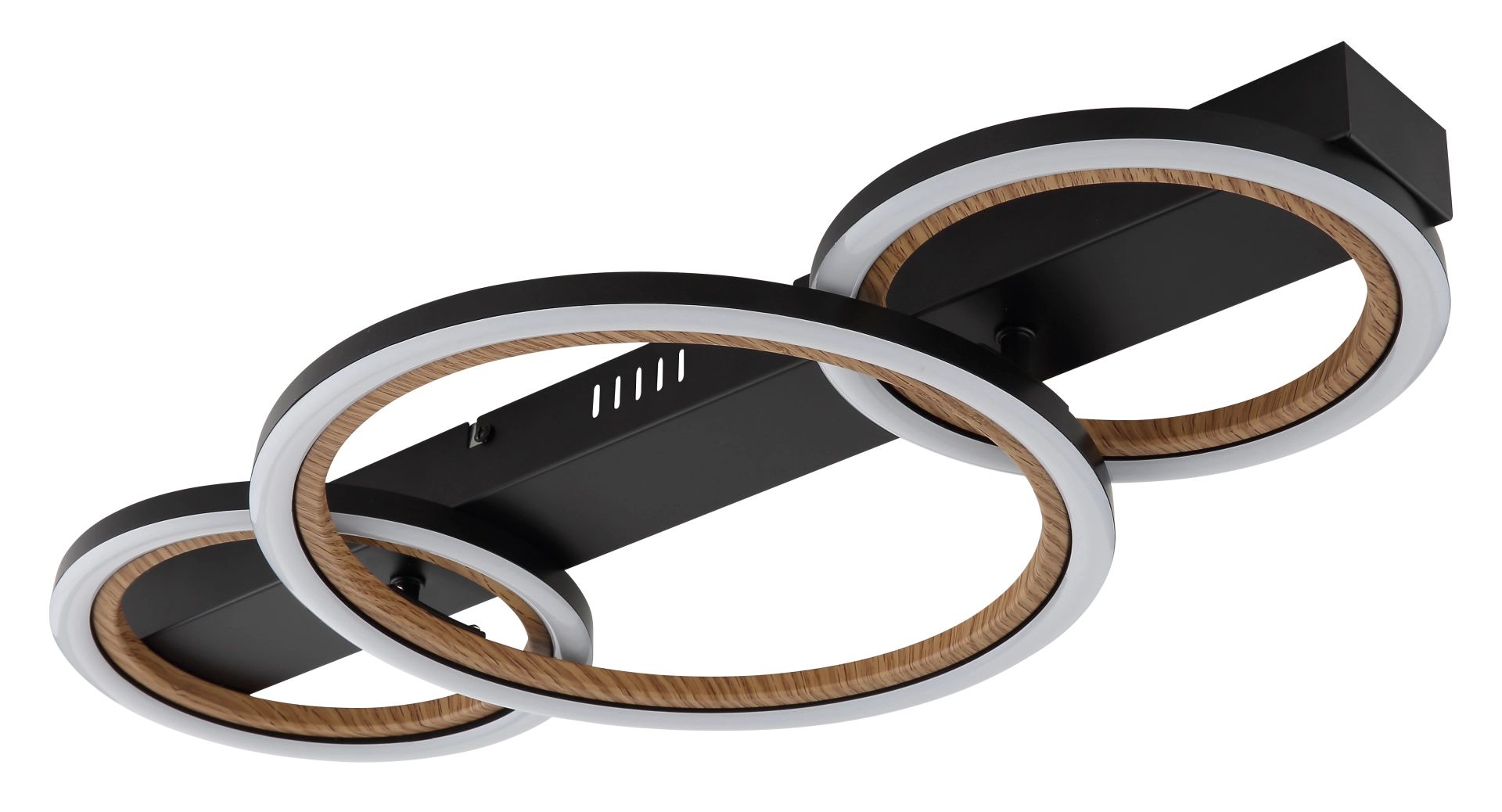 De rechthoekige plafondlamp DAKARI I voegt een stijlvolle touch toe aan elke ruimte met zijn opvallende ontwerp, bestaande uit drie ringen. Het matte zwarte metalen frame biedt een elegant contrast met de donkere houtlook van de aluminium accenten, wat resulteert in een warme en natuurlijke uitstraling. De lampenkap, gemaakt van mat zwart ABS en opaalwit plastic, zorgt voor een aangename en gelijkmatige lichtverdeling, perfect voor het creëren van een uitnodigende sfeer in zowel woon- als werkomgevingen.