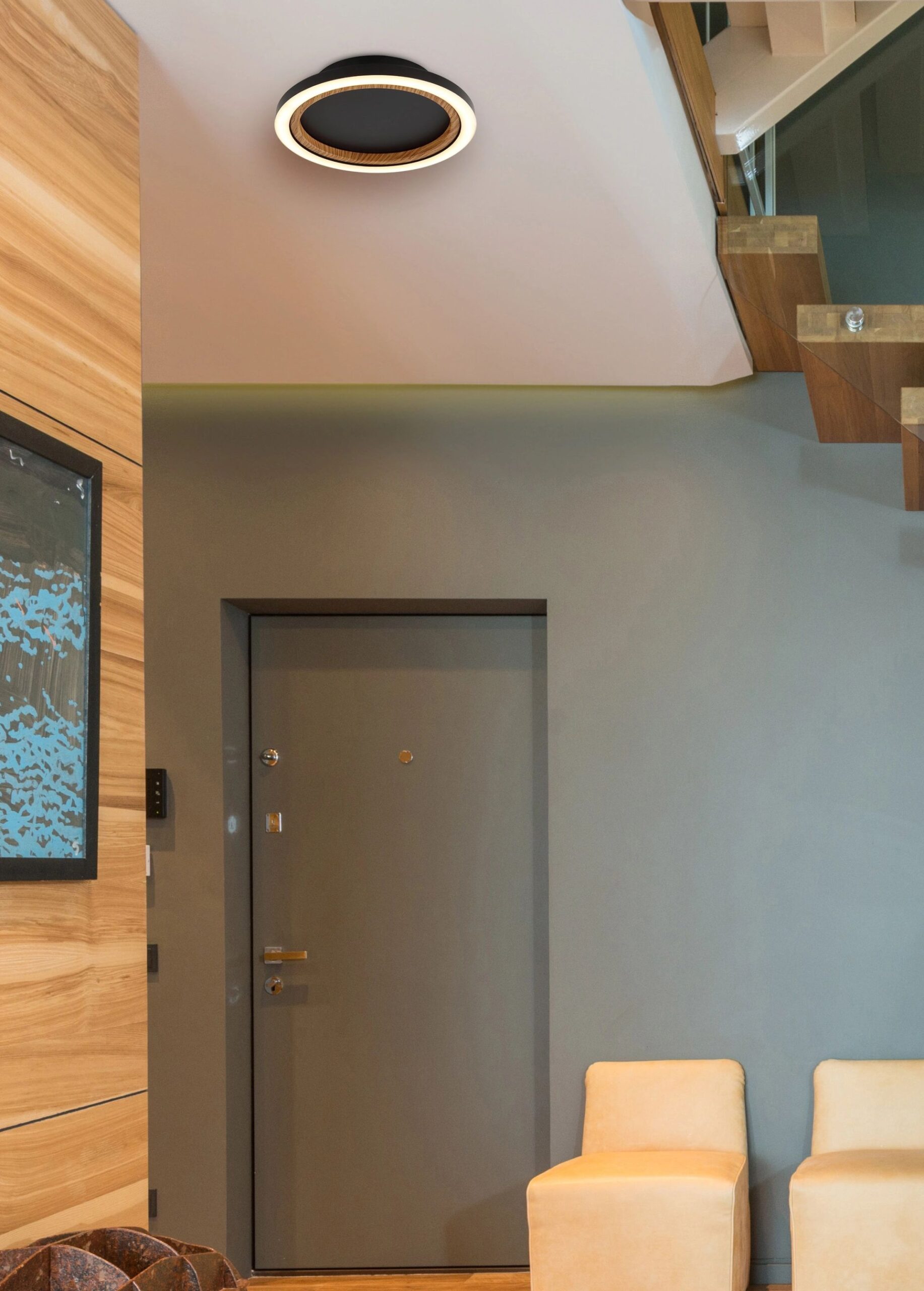 De DAKARI I plafondlamp is een perfecte combinatie van modern design en natuurlijke elementen. Met zijn matzwarte metalen behuizing en matzwarte ABS kap biedt deze lamp een eigentijdse en elegante uitstraling. De warme, natuurlijke touch wordt toegevoegd door de donkere aluminium houtafwerking. De opaalwitte plastic binnenzijde van de kap zorgt voor een gelijkmatige lichtverdeling, wat resulteert in een sfeervolle en aangename verlichting. Deze lamp is ideaal voor diverse ruimtes zoals de woonkamer, gang of slaapkamer.