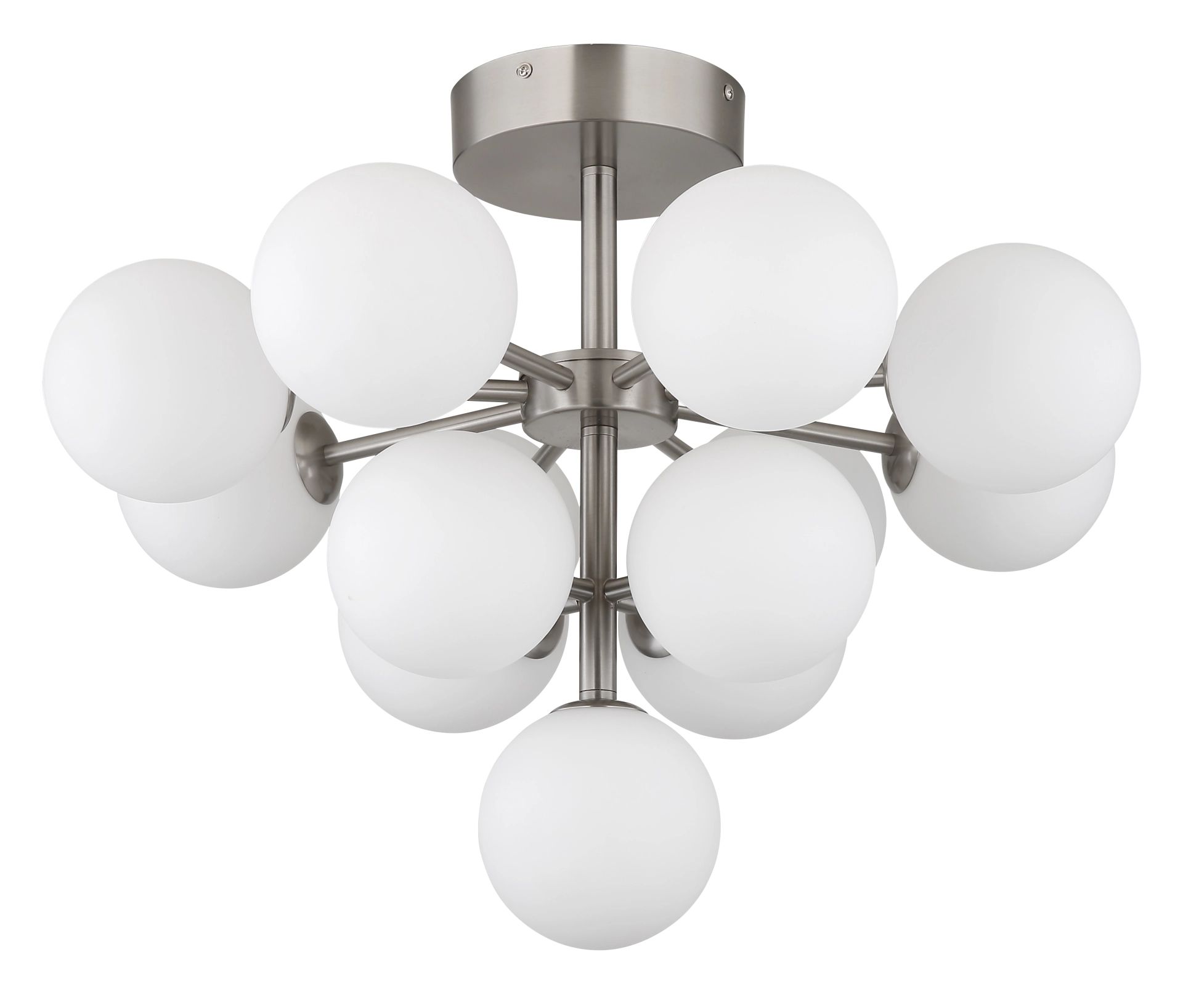 De exclusieve plafondlamp plafondlamp Grappy is een ware blikvanger dankzij het moderne design en het gebruik van hoogwaardige materialen. Het lichaam van mat nikkel in combinatie met de opale glazen bollen verleent deze lamp een verfijnde en eigentijdse uitstraling. Met een diameter van 560 mm en maar liefst 13 geïntegreerde G9 LED-lampen met een vermogen van 5W biedt deze plafondverlichting een aangename en heldere verlichting die perfect is voor elke ruimte.