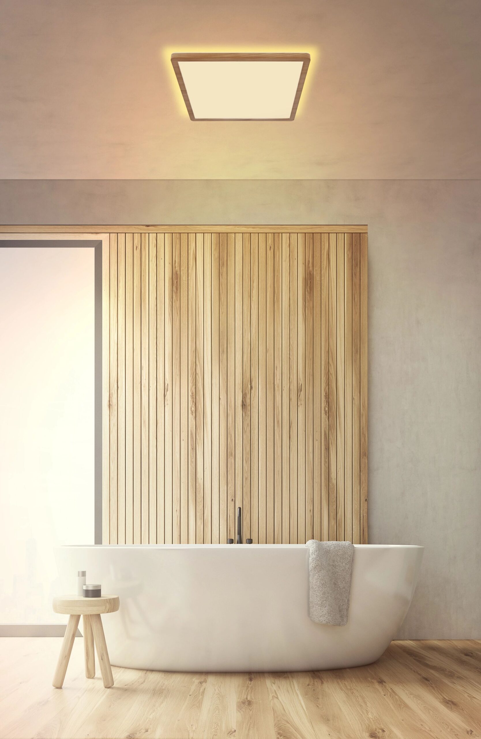 Ontdek de warme ambiance die de SAPANA plafondlamp aan jouw interieur kan toevoegen. Het stijlvolle ontwerp met een combinatie van houten kunststof en satijnen opale kunststof creëert een zacht en diffuus licht, waardoor elke ruimte wordt omhuld in een gezellige sfeer. Met de handige wandschakelaar kun je de verlichting eenvoudig instellen op verschillende niveaus van helderheid, variërend van 100% tot 50% en 10%. Daarnaast biedt de SAPANA een subtiele achtergrondverlichting die extra sfeer toevoegt aan je woonomgeving.