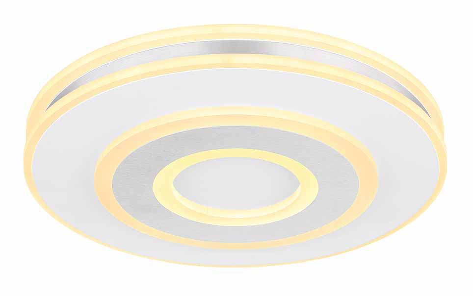 De Maru-serie plafondlamp combineert functionaliteit en buitengewoon design in perfecte harmonie. De tweevoudige ronde LED-panelen, elk met een diameter van 42cm, zijn kunstzinnig verwerkt in een elegante witte plafondlamp. Ze worden gecomplementeerd door twee extra kleinere LED-panelen, die een scala aan lichttemperaturen uitstralen van een gezellig warm wit van 2700 Kelvin tot een helder koud wit van 6000 Kelvin. De dimbare lichtkleur kan eenvoudig worden aangepast en vastgezet met de bijgeleverde afstandsbediening, terwijl de handige functies voor geheugen en nachtlicht veelzijdigheid toevoegen aan deze prachtige lamp.