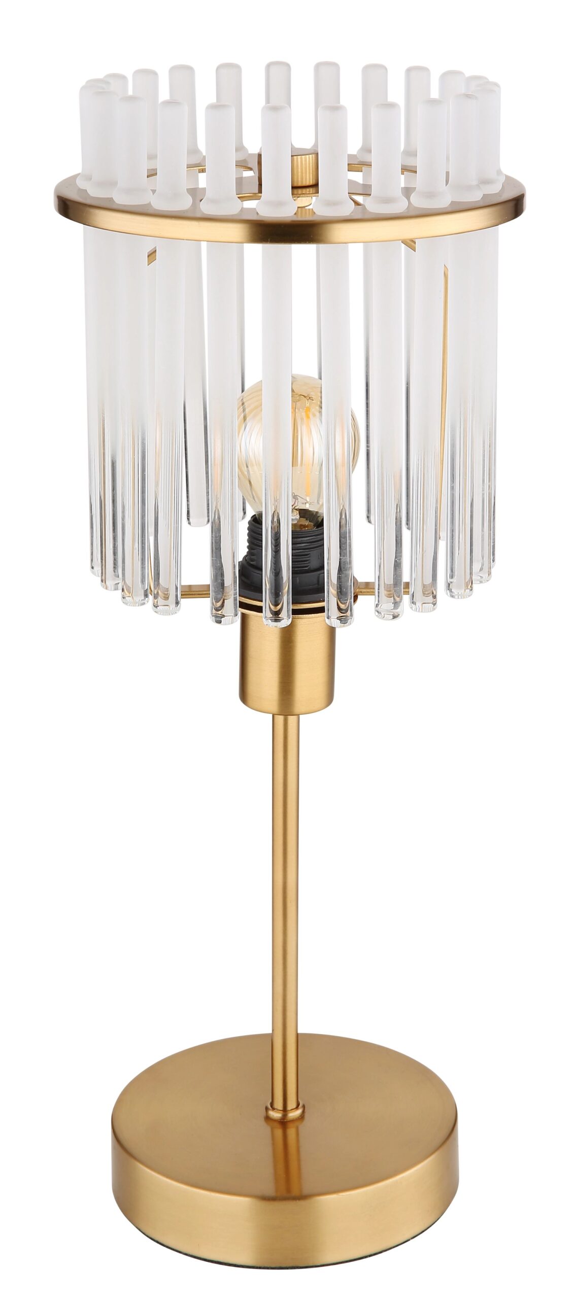 De GORLEY tafellamp is een schitterende aanwinst voor jouw interieur en creëert een unieke sfeer in elke kamer. Deze lamp beschikt over een ronde kap, gemaakt van opaal en heldere glazen staven die samen een fraaie gradient vormen. Het warme licht dat de lamp uitstraalt, voegt een gezellige ambiance toe. Het elegante lichaam van de GORLEY tafellamp is vervaardigd uit mat, goudkleurig metaal, wat bijdraagt aan de stijlvolle uitstraling.