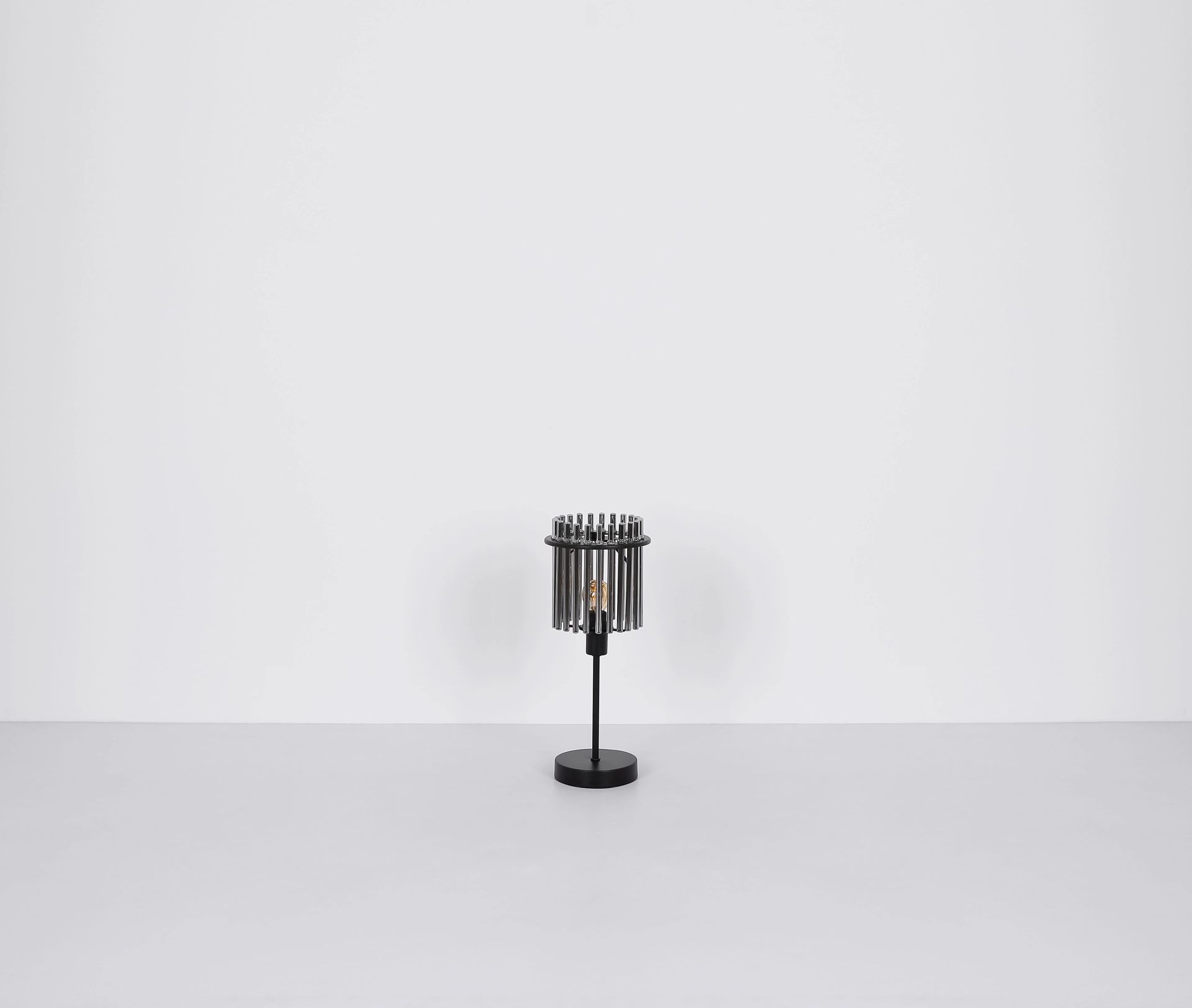 Moderne tafellamp met rookkleurige glazen staven Gorley