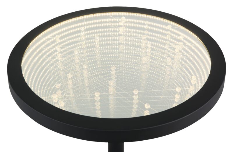 De BRYON vloerlamp combineert modern design met een spectaculair lichteffect. Met een elegante body van mat zwart metaal en een unieke spiegelglazen kap die een 3D-effect creëert, wordt deze lamp een ware eyecatcher in uw interieur. De heldere kunststof kristallen zijn een opvallend kenmerk en in combinatie met het indrukwekkende tunnel-effect biedt de BRYON een onvergetelijke verlichtingservaring. Met een lichtsterkte van 131 lumen en een kleurtemperatuur van 3000 K zorgt deze lamp voor een warme en uitnodigende sfeer in elke ruimte.