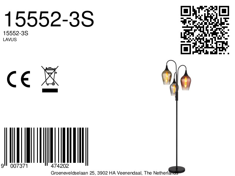 De LAVUS vloerlamp is een opvallend meubelstuk met een modern ontwerp, gekenmerkt door een recht buisvormig lichaam en drie elegant gebogen armen. Deze armen dragen ronde, bolvormige glazen die samen een unieke uitstraling creëren. Het matte zwarte metalen frame geeft de lamp een stijlvolle en chique look. De glazen kappen zijn uitgevoerd in bijzondere kleuren: koper, goud en chroom, die samen een sfeervol lichtspel genereren. Dit tijdloze en elegante ontwerp past perfect in elke woonruimte, of het nu in de woonkamer, slaapkamer of als sfeerverlichting naast je favoriete leesplek is.