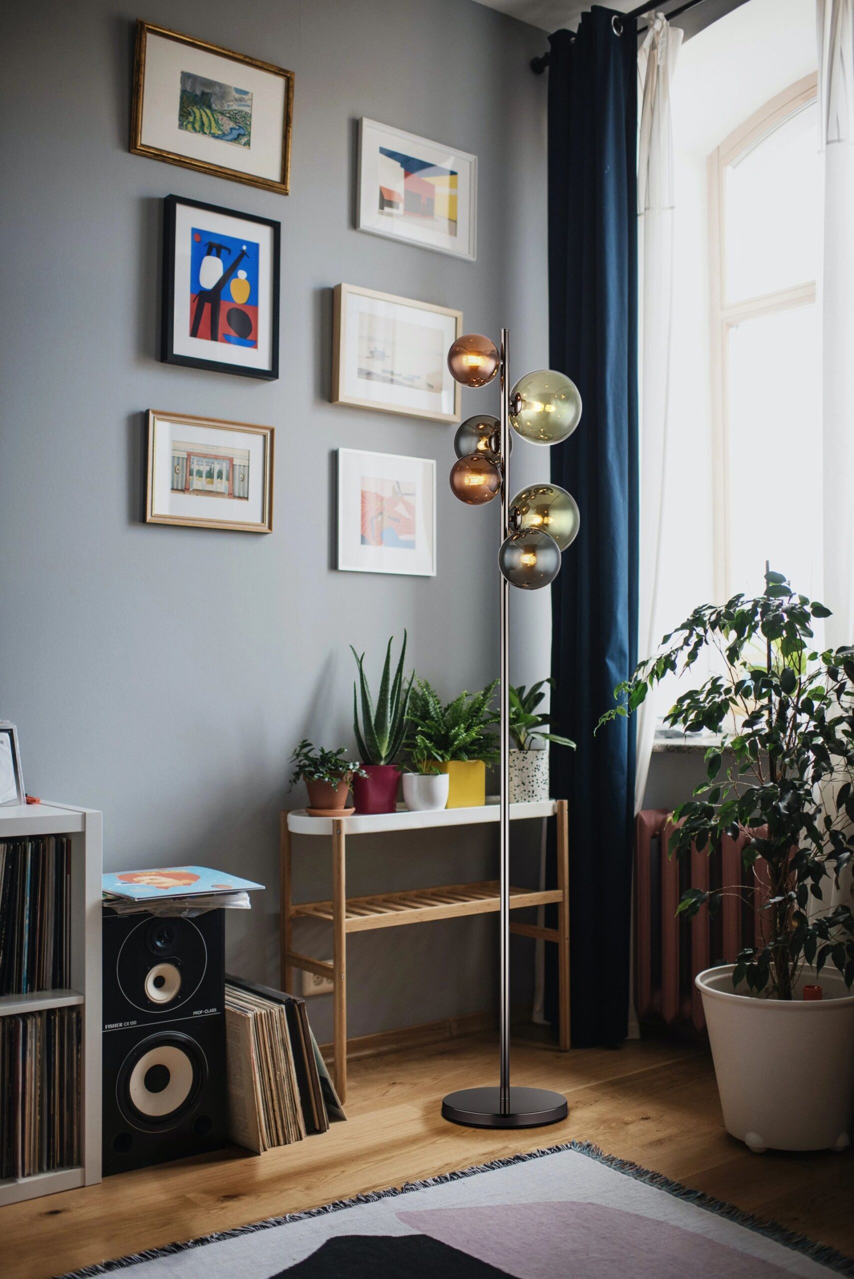 Met een lichtopbrengst van 290 lumen biedt de vloerlamp de juiste helderheid om uw huis te verlichten. De unieke kleuren van de glazen bollen, zoals brons, groen en petrol, voegen een vleugje stijl en kleur toe aan iedere ruimte. Bovendien maakt de voet schakelaaraansluiting in de kabel het eenvoudig om de lamp aan en uit te schakelen. Ontdek de RIHA vloerlamp en geef uw interieur een stralende uitstraling.