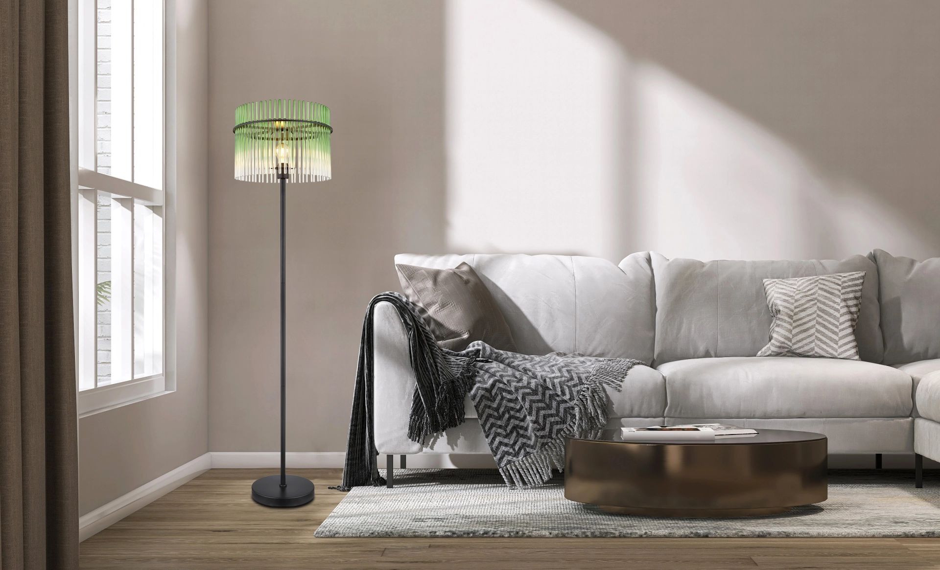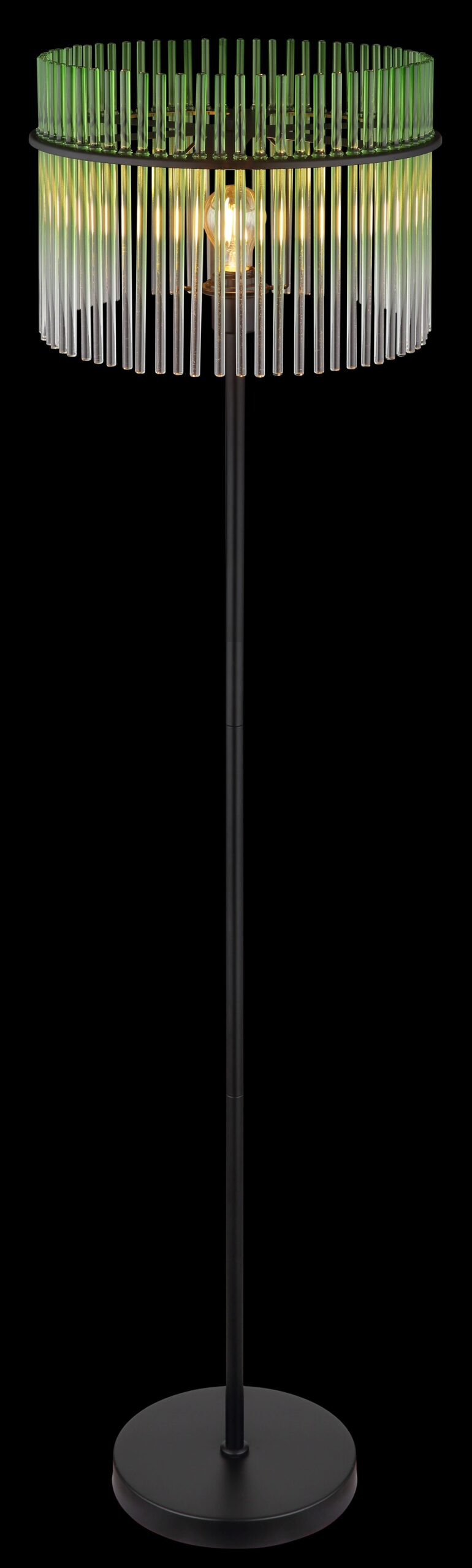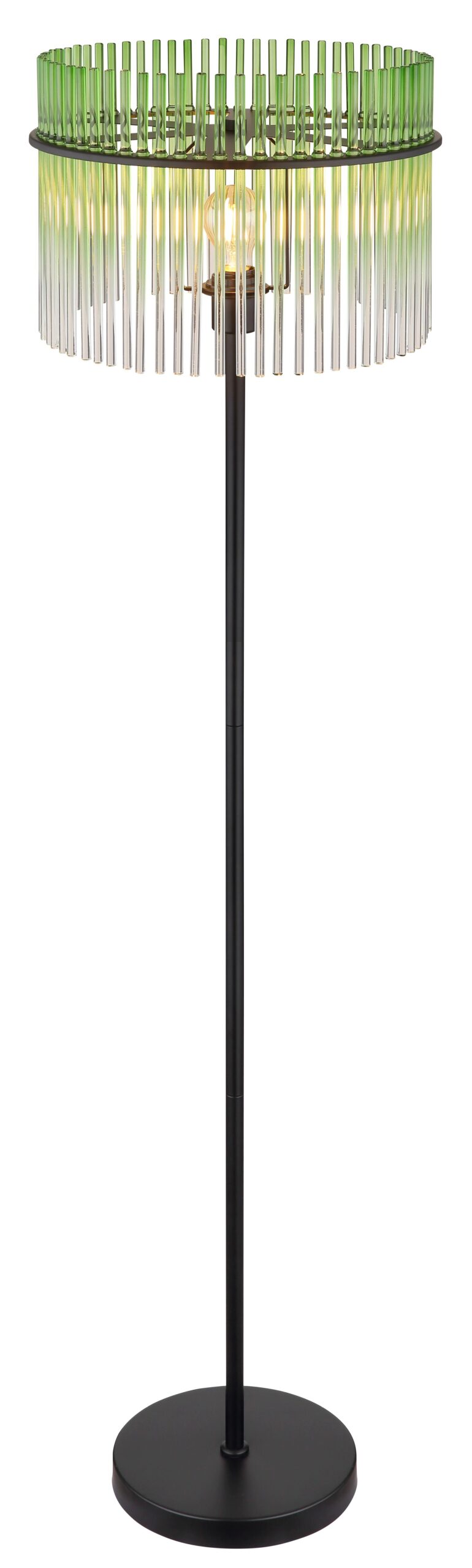 De GORLEY vloerlamp combineert moderniteit met elegantie. Met zijn ronde voet van mat zwart metaal en de opvallende kap van groene glazen staven, heeft deze lamp een kunstzinnig ontwerp dat de aandacht trekt. Het licht dat door de glazen staven filtert, creëert een sfeervolle ambiance in elke ruimte. Met een diameter van 380 mm is de GORLEY vloerlamp perfect voor verschillende interieurstijlen en voegt hij een stijlvol accent toe aan woonkamers, slaapkamers of kantoren.