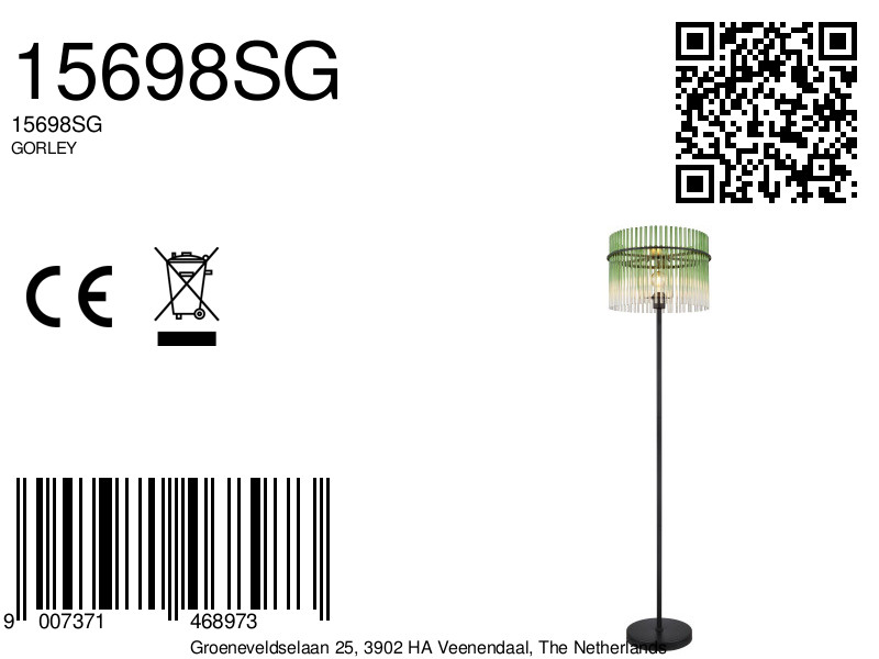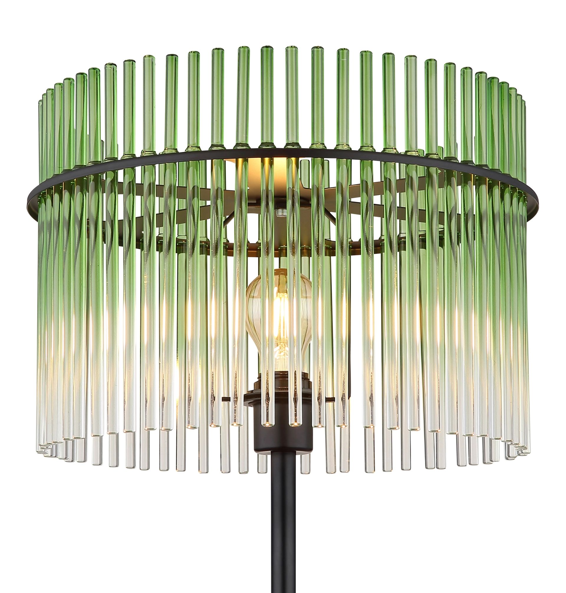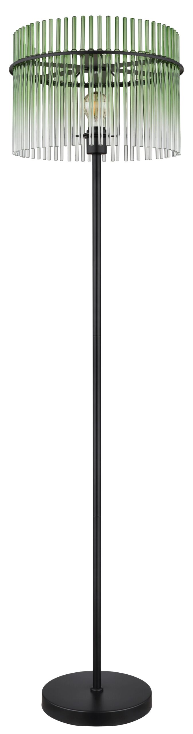 De GORLEY vloerlamp combineert moderniteit met elegantie. Met zijn ronde voet van mat zwart metaal en de opvallende kap van groene glazen staven, heeft deze lamp een kunstzinnig ontwerp dat de aandacht trekt. Het licht dat door de glazen staven filtert, creëert een sfeervolle ambiance in elke ruimte. Met een diameter van 380 mm is de GORLEY vloerlamp perfect voor verschillende interieurstijlen en voegt hij een stijlvol accent toe aan woonkamers, slaapkamers of kantoren.