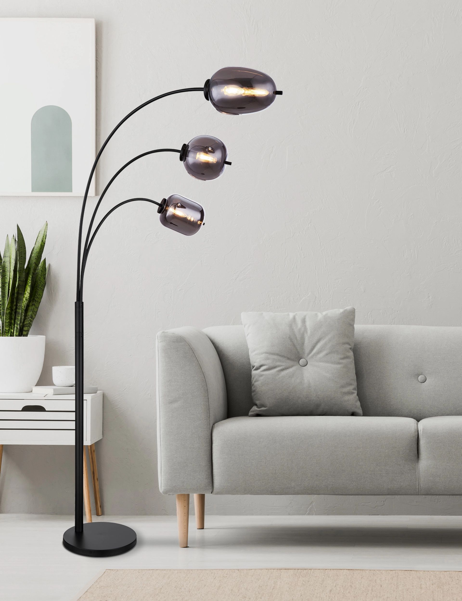 Moderne vloerlamp met rokerige glazen kappen Blacky