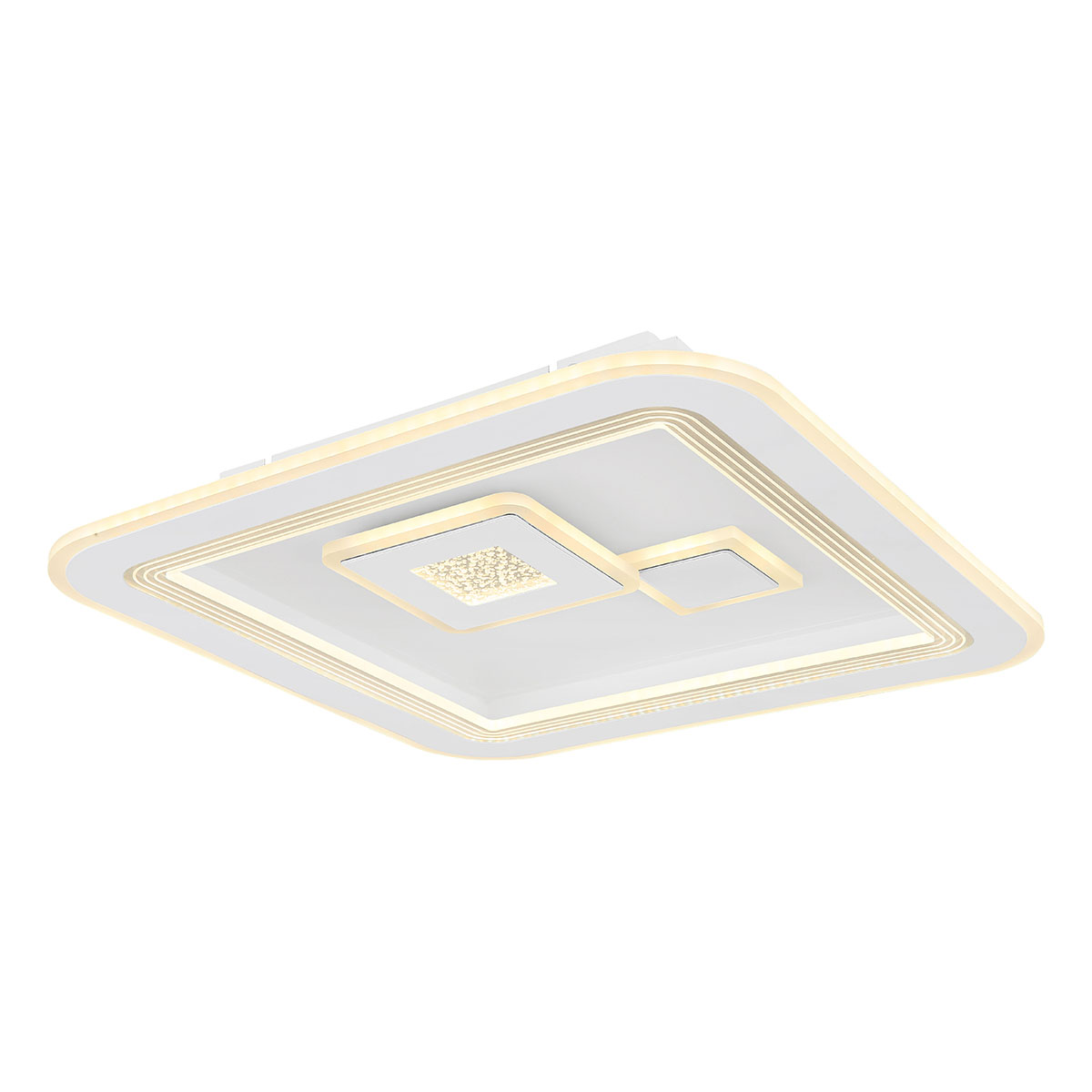 Ontdek de innovatieve Valeria plafondlamp die een mix van stijl en technologie biedt. Deze vierkante LED-plafondlamp, met een formaat van 47×47 cm, wordt gekenmerkt door twee strakke, witte rechthoeken. Geniet van de geruststellende nachtlampmodus en de nuttige geheugenfunctie die de voorkeursinstellingen van het licht vasthoudt, zelfs na het uitschakelen. Pas de lichtkleur aan, varieer van 2700 Kelvin warm wit tot 6500 Kelvin koel wit, en pas de lichtsterkte aan met de bijgeleverde afstandsbediening om de perfecte ambiance te creëren, van een warm welkom in de hal tot helder licht voor werkomgevingen.