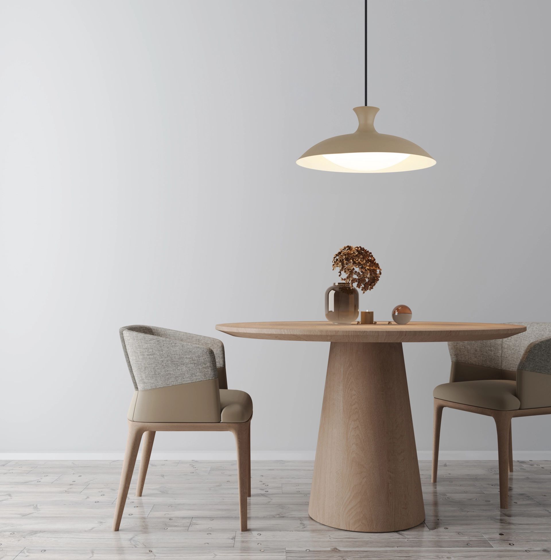 De ROCHA hanglamp is een prachtige aanvulling voor uw interieur, dankzij het stijlvolle en moderne ontwerp dat perfect past bij diverse woonstijlen. Met een ronde kap van zandkleurig, mat metaal en opaalplastic zorgt deze lamp voor een aangename en gelijkmatige lichtverdeling. Met een diameter van 400 mm en een indrukwekkende lichtopbrengst van 1340 lumen biedt de lamp krachtige, maar zachte verlichting, ideaal voor eetkamers, woonkamers of gangen.