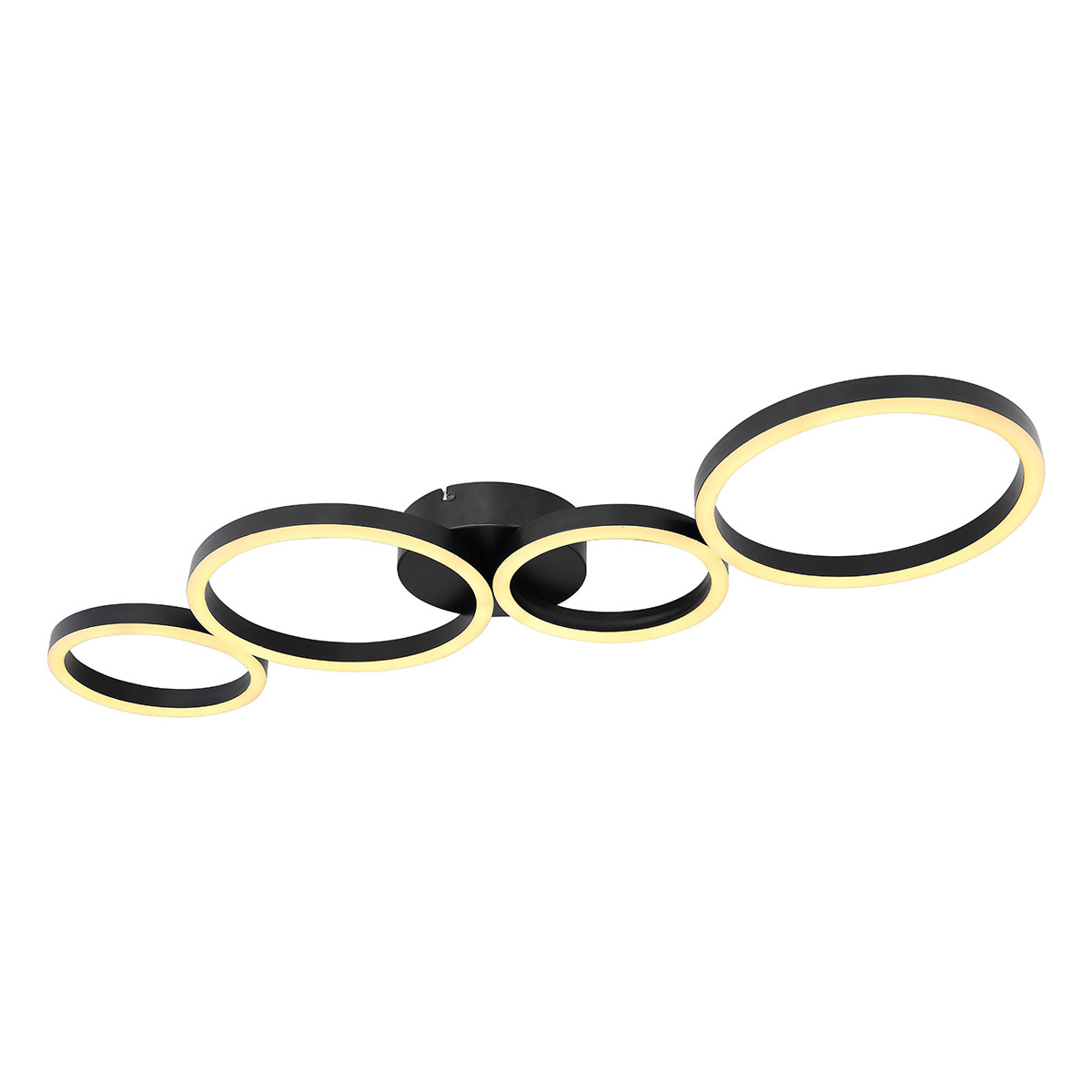 Zet een nieuwe standaard in huisdecoratie met de geavanceerde Plafondlamp “VENOSA”. Deze lamp is versierd met vier stijlvolle, zwarte metalen ringen, afgewerkt met een kunststof kap voor extra duurzaamheid. De lamp heeft een ingebouwde LED-plaat die met 1500 lumen en 3000 Kelvin een warm, helder licht produceert. De afmetingen (L: 88,5 cm, B: 33 cm, H: 6,5 cm) maken het een opmerkelijke aanvulling op elke ruimte. Ook beschikbaar in een frisse, witte kleurstelling.