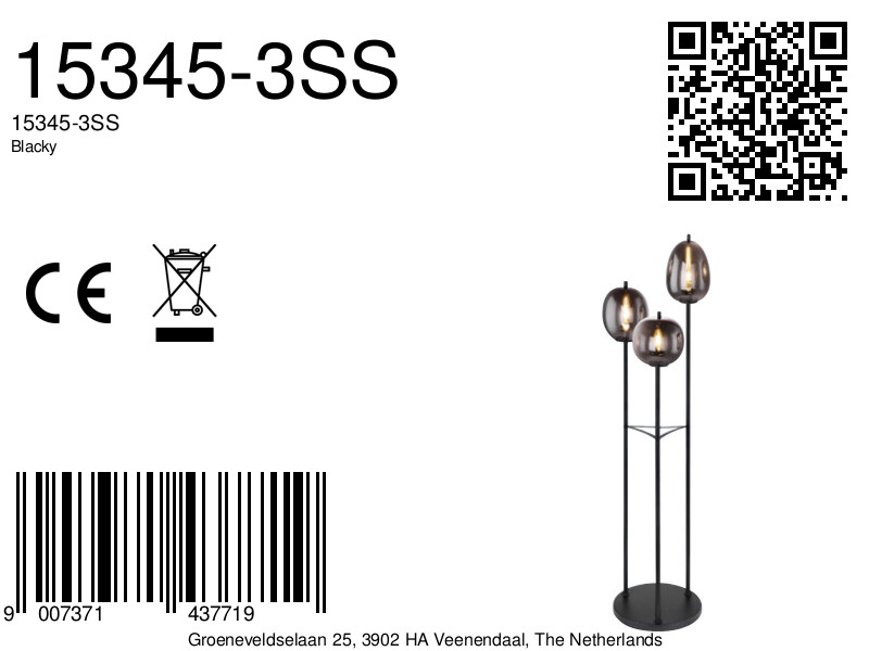 Een kunstwerk op zich, deze Blacky vloerlamp met drie lange metalen staven en rokerige glazen kappen, biedt een verstelbare verlichtingsoplossing die stijl en functionaliteit in uw huis brengt. Perfect voor een dynamische aanpassing van sfeerverlichting in elke ruimte.