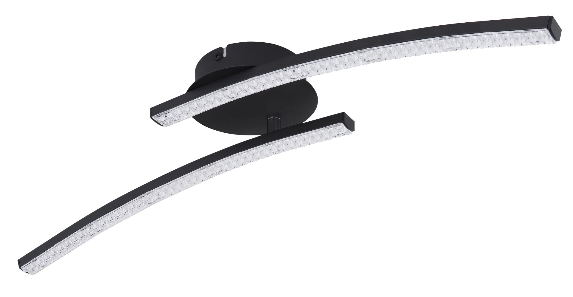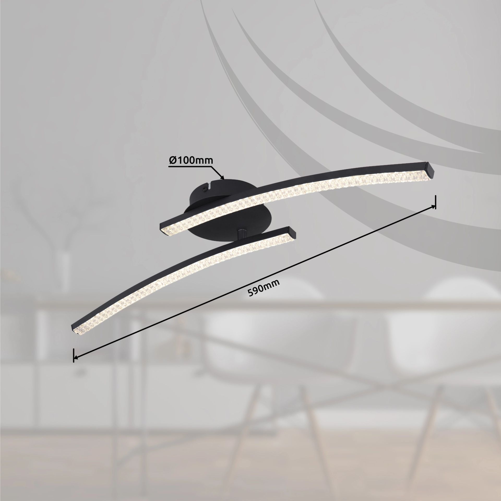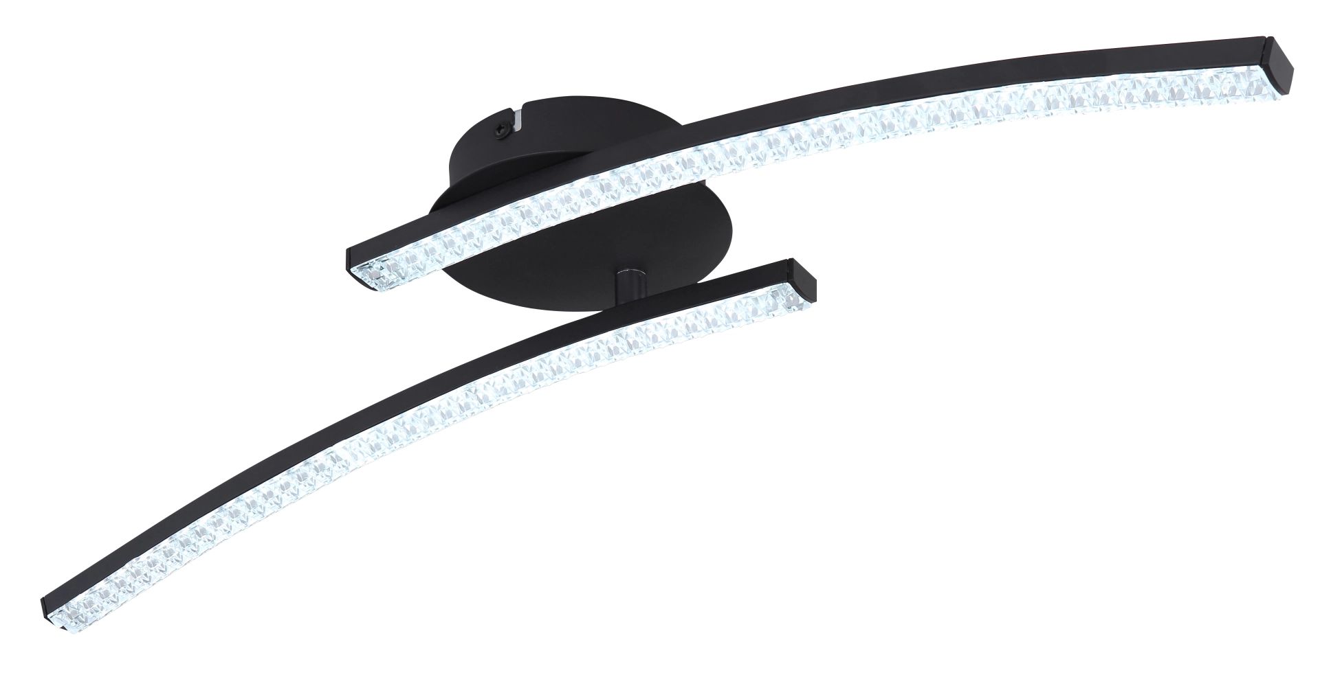 Deze moderne plafondlamp uit de Jules serie trekt de aandacht met zijn strakke en eenvoudige ontwerp van zwart mat metaal. Met een lengte van 59 cm bestaat de lamp uit twee robuuste metalen stangen die aan een ronde top zijn bevestigd. De combinatie van acryl en schitterende acryl kristallen geeft de lamp een luxe uitstraling. Onder het acryl bevinden zich de meegeleverde LED-lampen, die samen een krachtige verlichting van maar liefst 700 lumen leveren.