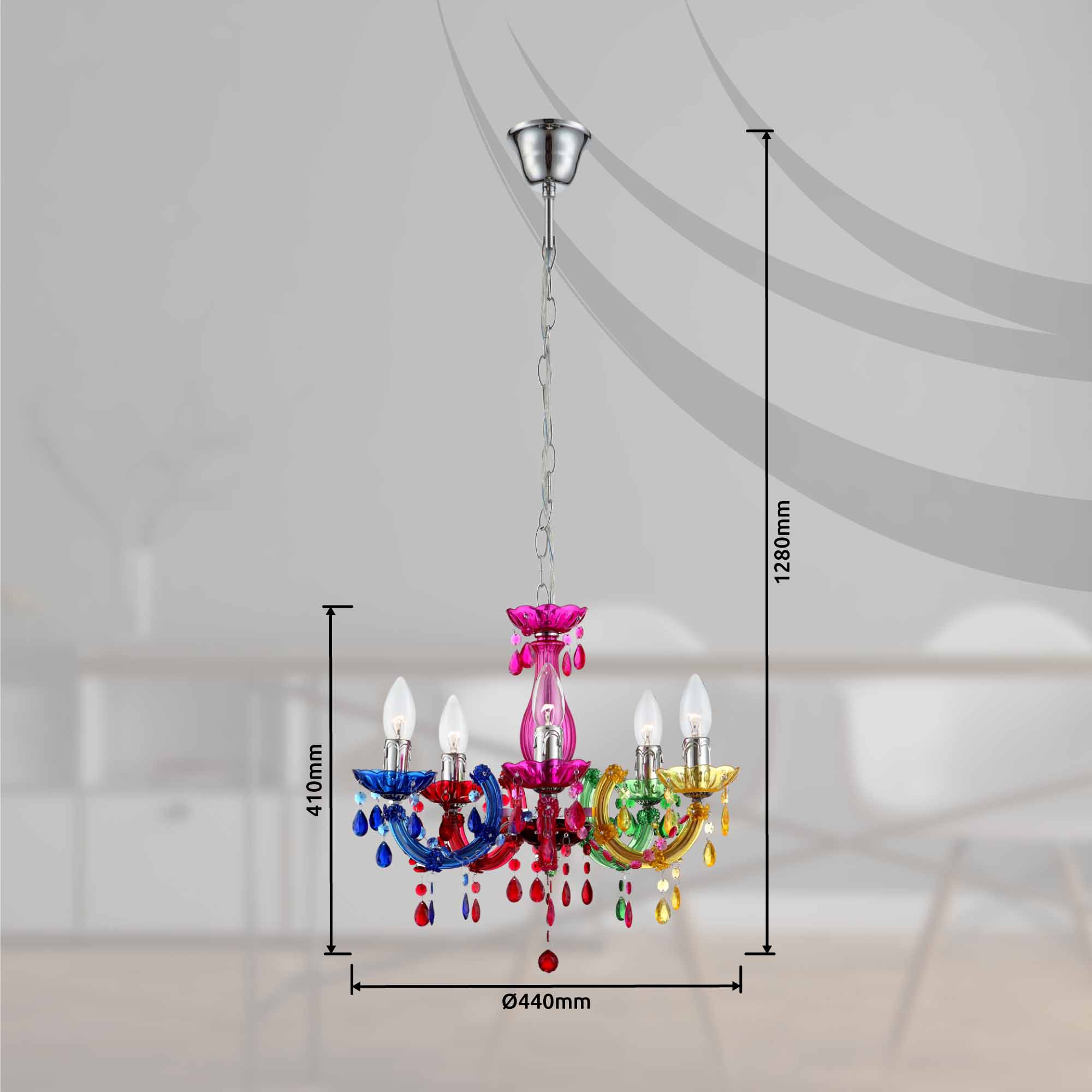 Multicolor 5-lichts kroonluchter metaal/acryl Globo Cuimbra ii