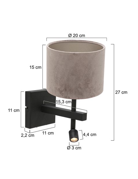 De muurlamp met grijze kap uit de Stang-serie van Steinhauer combineert eigentijds design met functioneel gemak. Het robuuste zwarte metalen armatuur is voorzien van een E27-fitting voor lichtbronnen tot 40W en een geïntegreerd leeslampje van 1W, 2900 Kelvin en 100 lumen. Beide lichtbronnen zijn afzonderlijk te bedienen via de twee schakelaars op de wandplaat.