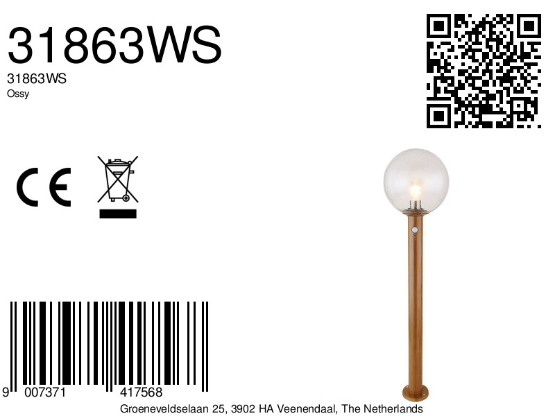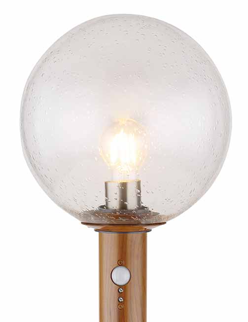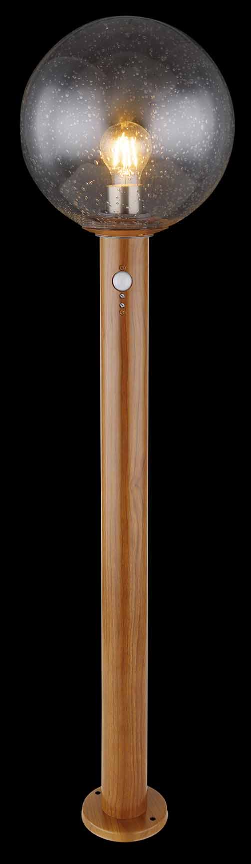 De Ossy buitenlamp, gekenmerkt door een houten uitstraling die naadloos in elke tuin past, is een uitstekende keuze voor een vloerlamp in de buitenruimte dankzij zijn hoogte van 100cm. Fijnzinnig ontworpen met een cilindervormige structuur, heeft deze lamp een E27 LED-socket die kan worden aangepast met een lamp van uw keuze tot een maximale capaciteit van 15 watt. Voorzien van een bewegingsmelder, heeft het een bereik van 0-7m met een detectiehoek van 90°. Deze lamp komt compleet met een bolvormige, bubbelglas beschermkap voor de LED-aansluiting, waardoor het niet alleen een visueel aantrekkelijk element is, maar ook beschermd is tegen waterspatten.