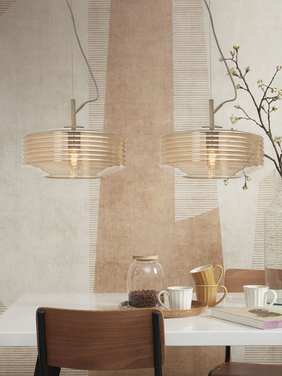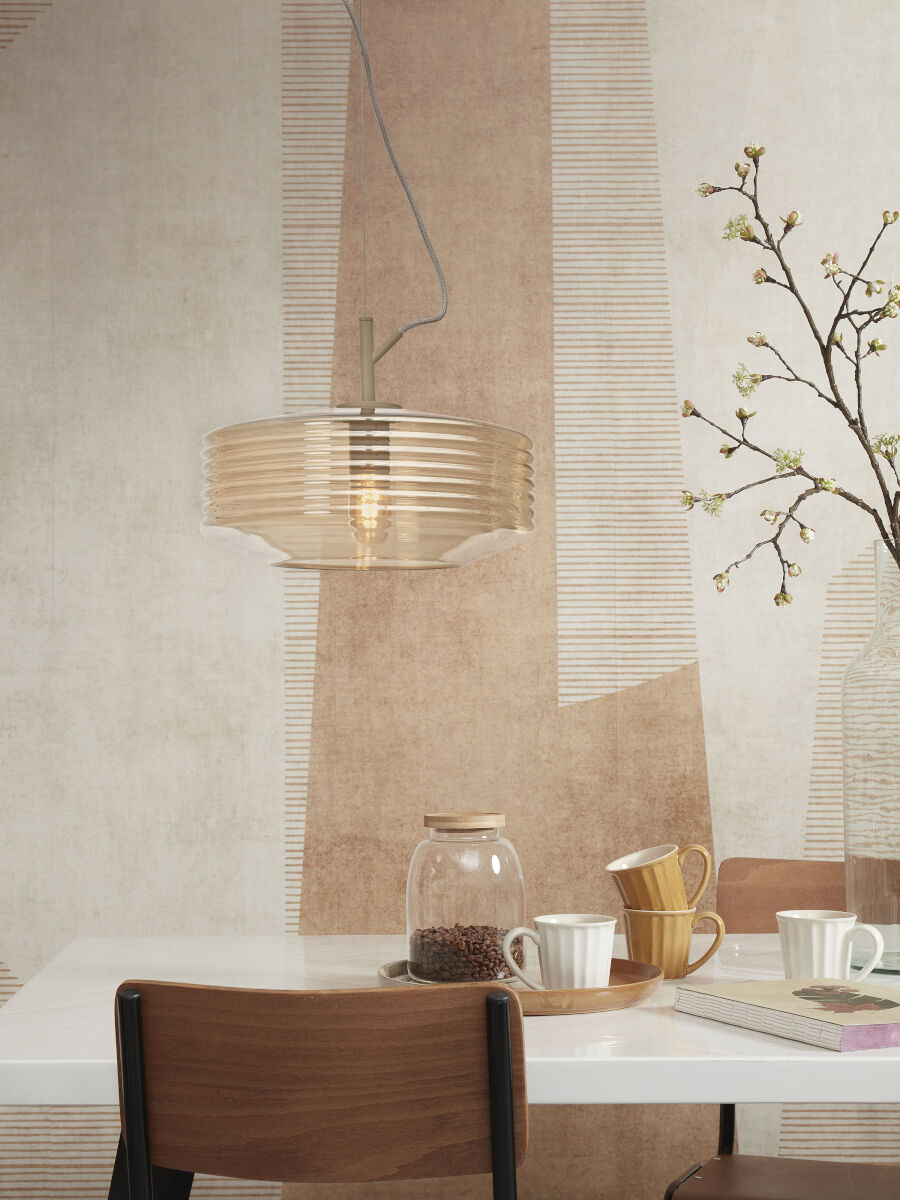 De naturel glazen hanglamp van It’s About RoMi in klassieke stijl voegt een warme en verfijnde sfeer toe aan je ruimte. Het elegante ontwerp met natuurlijk glas en metalen afwerking zorgt voor een sfeervolle verlichting in je eetkamer, hal, slaapkamer of woonkamer. Beschermd met IP20 en voorzien van een E27 fitting.
