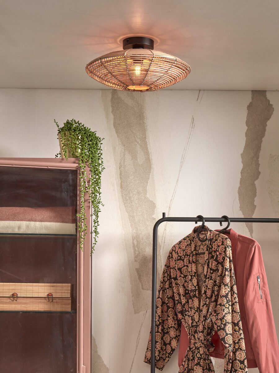 Naturel plafonnière metaal rotan bohemian, GOOD&MOJO Tanami. Ideaal voor eetkamer, hal, slaapkamer of woonkamer. Voorzien van E27 fitting en stofdicht (IP20). Exclusief lichtbron. Voeg een natuurlijke elegantie toe aan je ruimte met deze prachtige lamp.