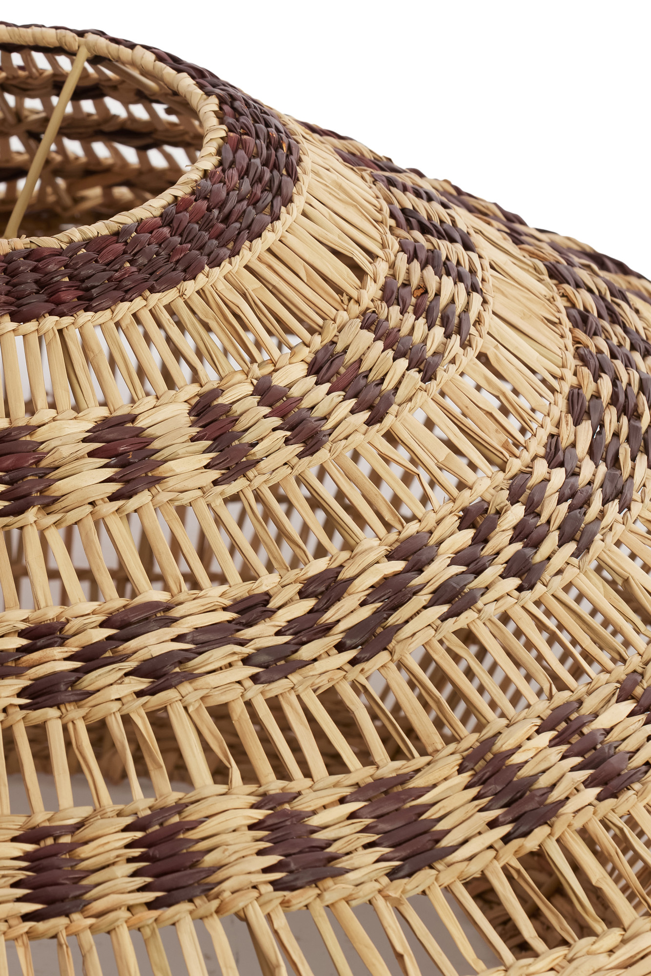 De Owana hanglamp in naturel met bruin zeegras (Ø80 x H.30 cm) is een groots en natuurlijk statement in je interieur. Het gevlochten zeegras zorgt voor een bohemian uitstraling, waarbij het licht speels door de structuur heen valt. De combinatie van lichte en donkere tinten in het materiaal geeft diepte en maakt de lamp extra levendig. Met zijn royale formaat is dit model uitermate geschikt boven een grote eettafel of als eyecatcher in een ruime woonkamer. Deze lamp haalt de natuur naar binnen en creëert meteen een ontspannen, zomerse sfeer in huis.