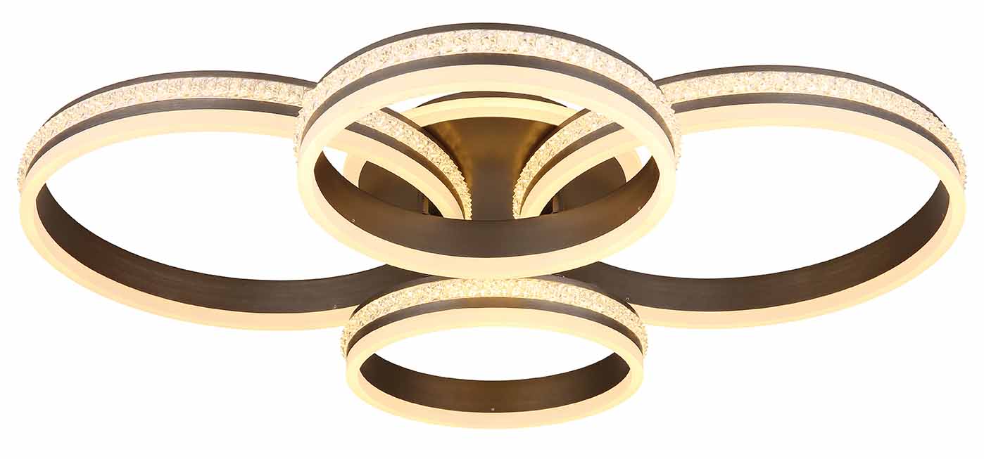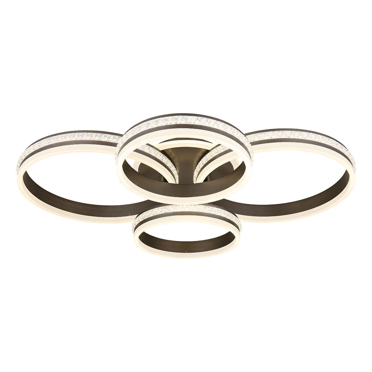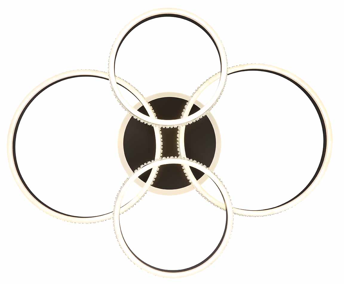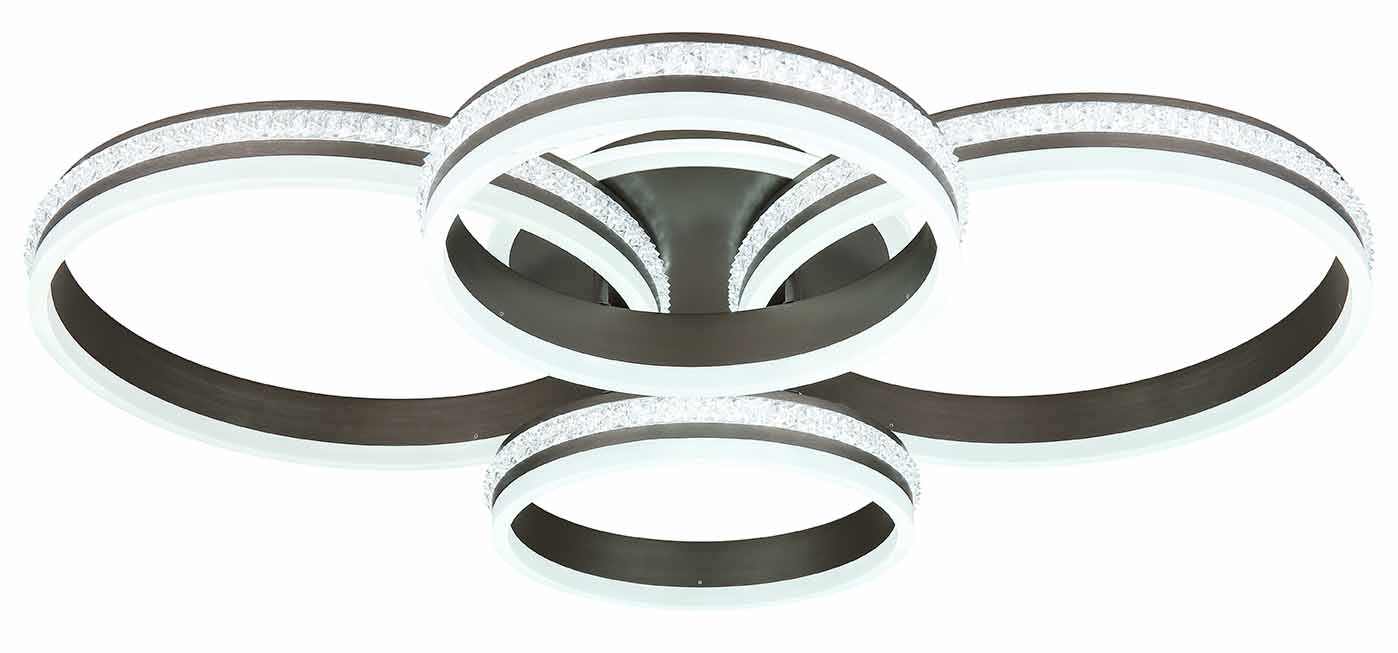 Nikkelen/zwarte plafondlamp kristallen 4-ringconstructie Globo Grouni